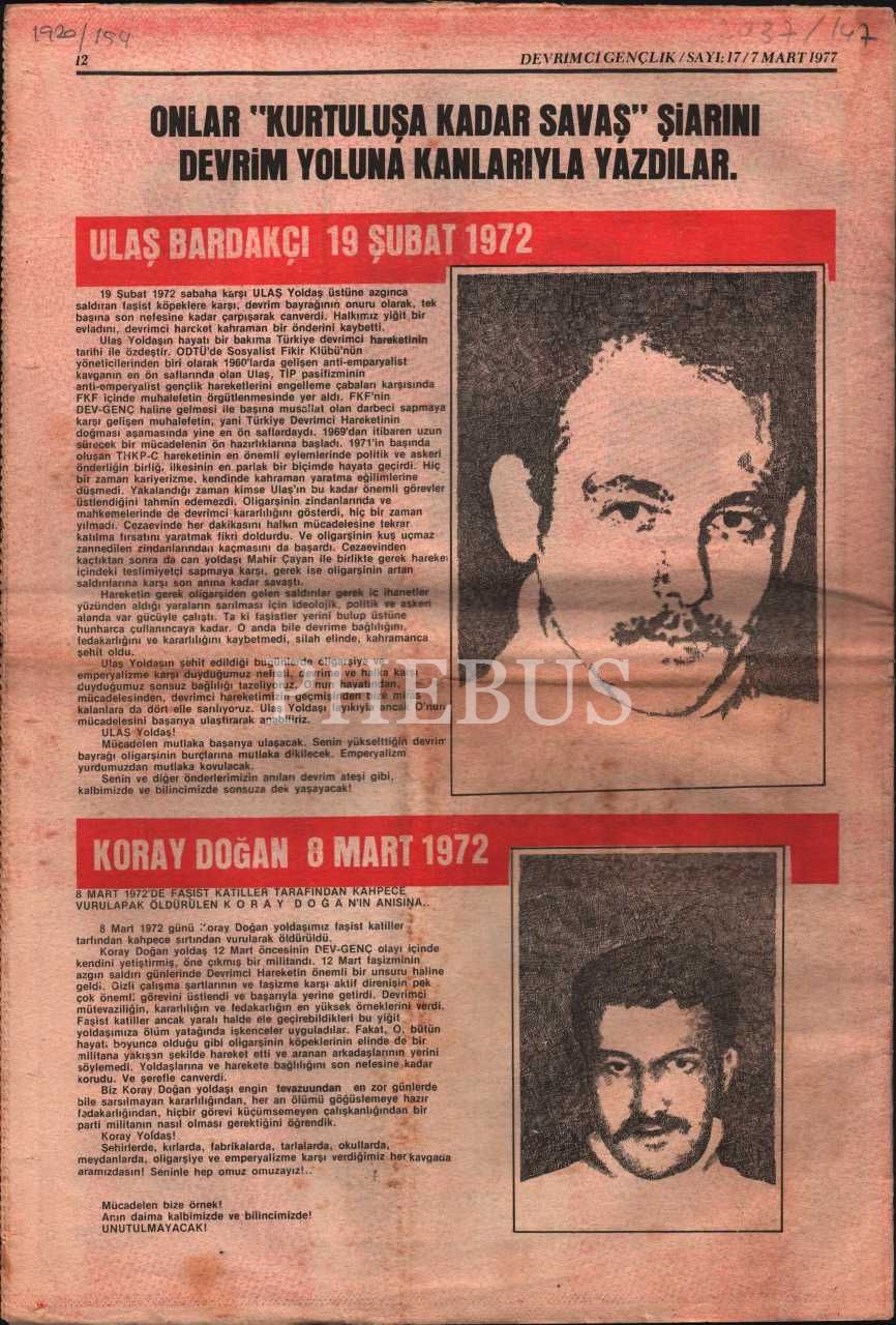 Siyasi DEVRİMCİ GENÇLİK dergisinin 17. sayısı, 7 Mart 1977, 29x43 cm