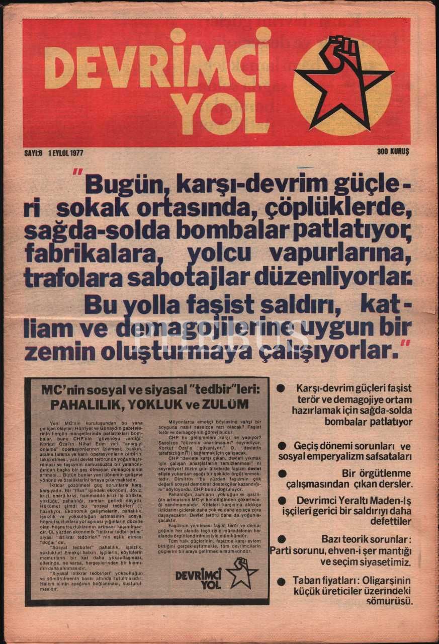 Siyasi DEVRİMCİ YOL dergisinin 8. sayısı, 1 Eylül 1977, 29x43 cm