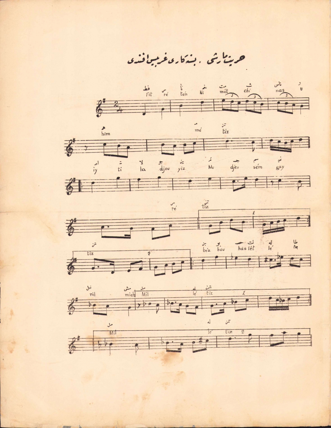 Hürriyet Marşı Terane-i Şükran, Bestekârı: Garbis Efendi, Güftekârı: Halil Edib Bey, 26x33,5.