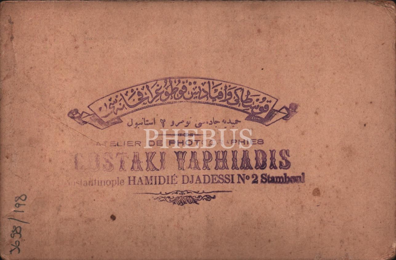 Şık giyimli beyefendinin kabin fotoğrafı, Costaki Vaphiadis Fotoğrafhanesi- Constantinople, 11x16 cm