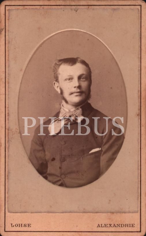 Şık giyimli genç beyefendinin kabin portre fotoğrafı, Foto Alexandrie [İskenderiye]- Mısır, 6x10 cm