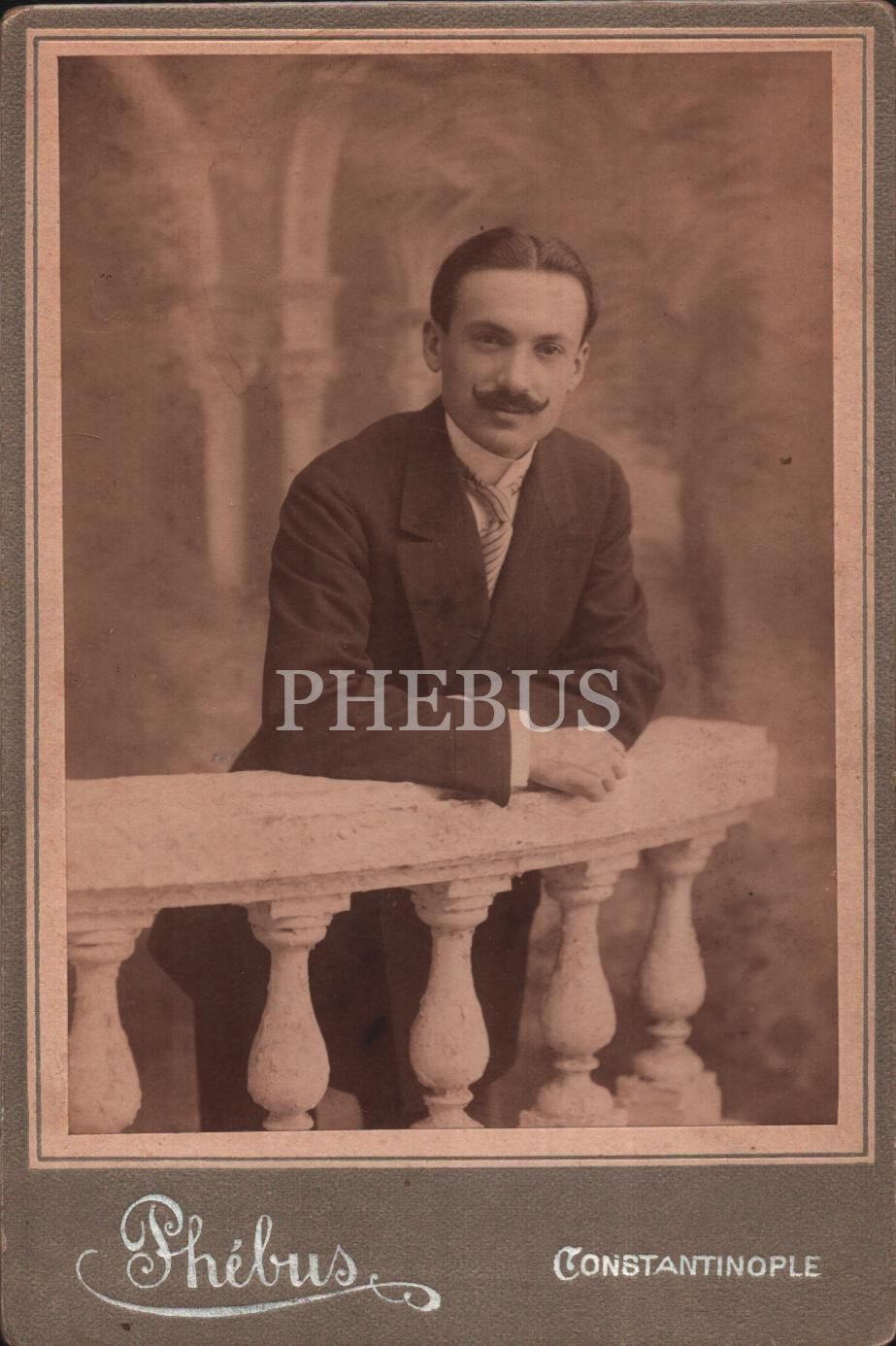 Şık giyimli beyefendinin kabin hatıra fotoğrafı, Phebus Fotoğrafhanesi- Constantinople, 22 Kanunisani 1328, 12x18 cm