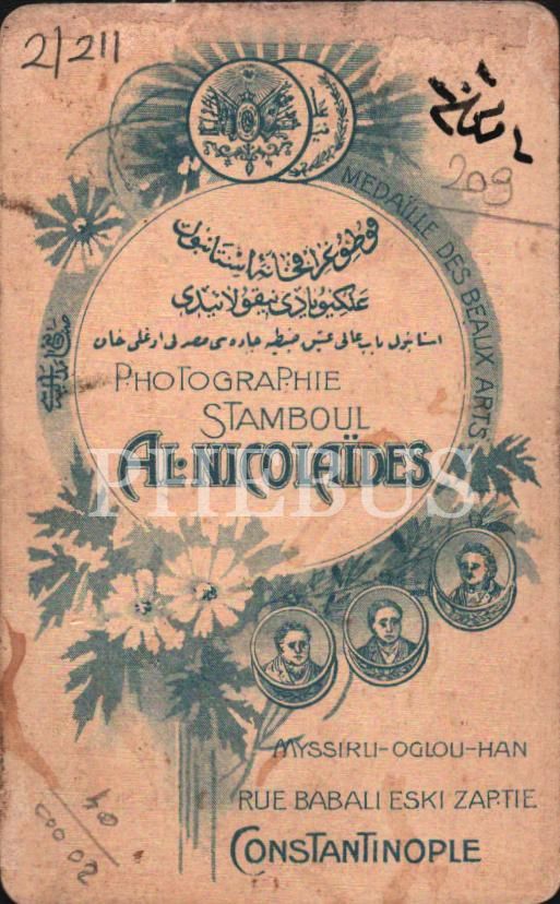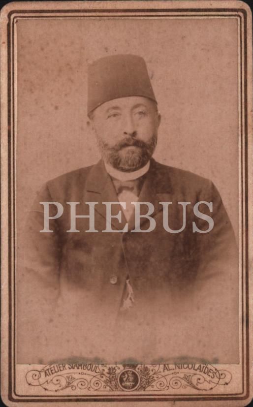 Şık giyimli fesli beyefendinin kabin portre fotoğrafı, Foto Al. Nicolaides- Constantinople, 6x10 cm