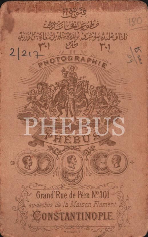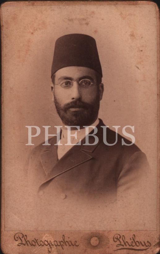 Şık giyimli fesli beyefendinin portre kabin fotoğrafı, Phebus Fotoğrafhanesi- Constantinople, 6x10 cm