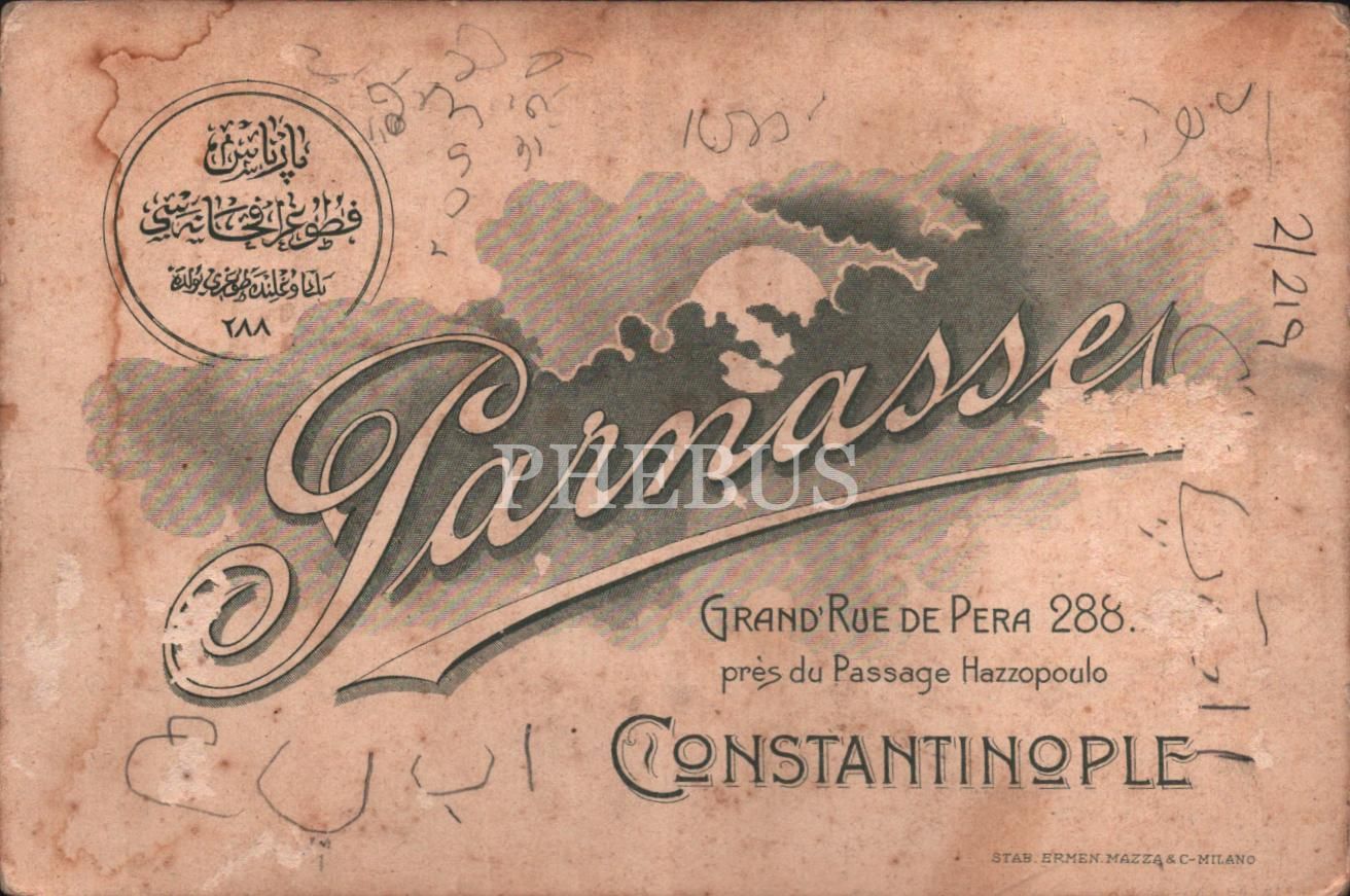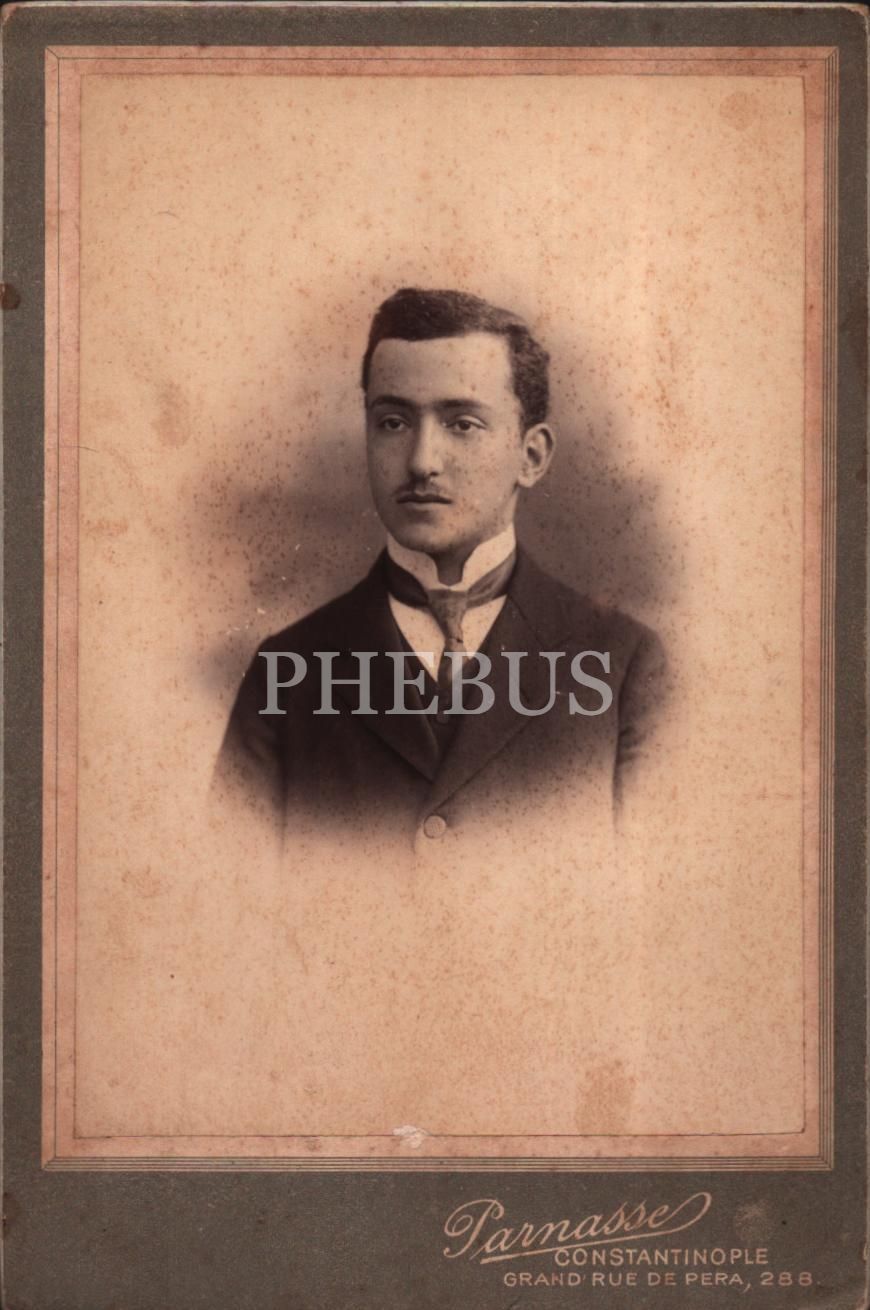 Şık giyimli genç beyefendinin kabin fotoğrafı, Foto Parnasse- Constantinople, 11x17 cm
