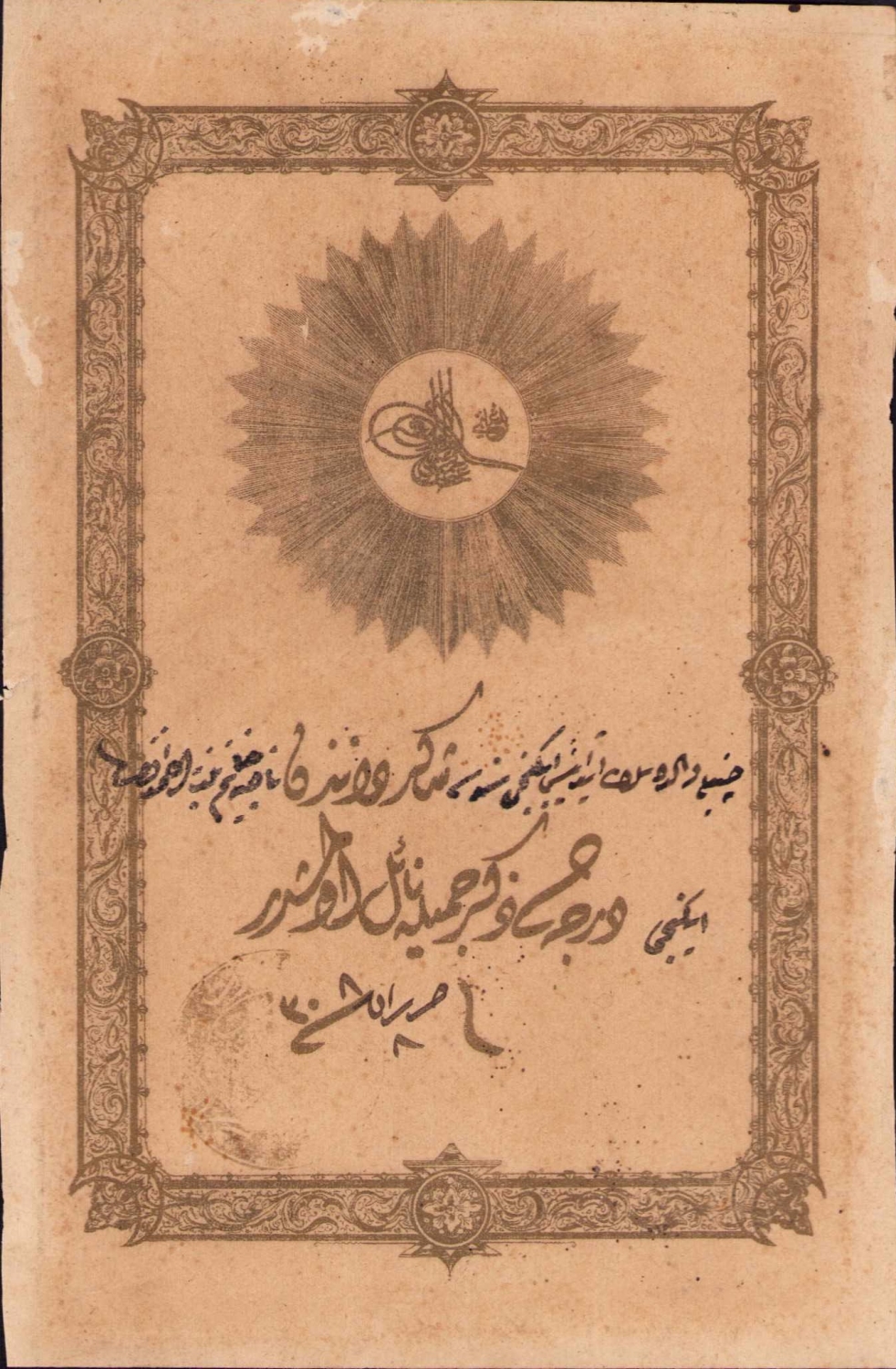 Valide Sultan Mektebi ikinci sene ikinci derece zikr-i cemil varakası, Osmanlıca, 1308, 11x17 cm.