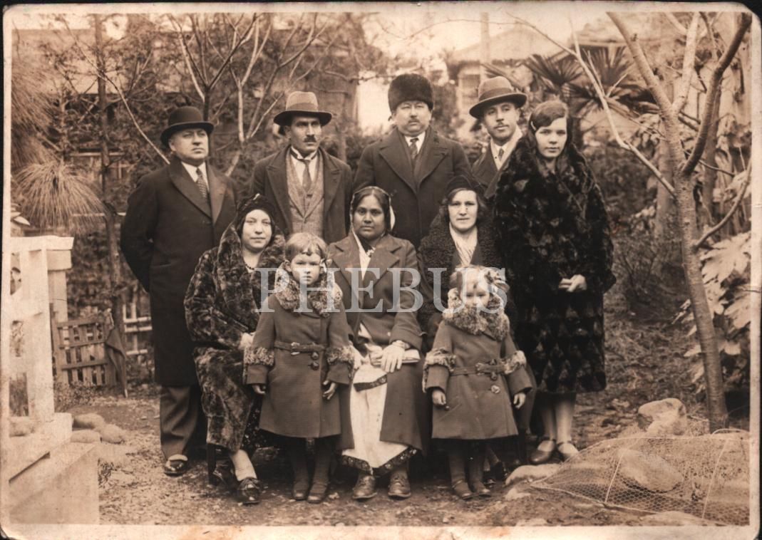 Asil giyimli bir ailenin toplu hatıra fotoğrafı, 9x14 cm