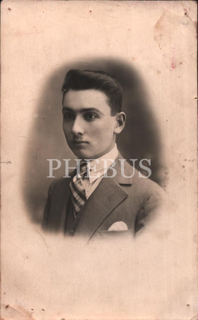 Takım elbiseli genç beyefendinin portre fotoğrafı, Zafer Fotoğrafhanesi- Balıkesir, 9x14 cm