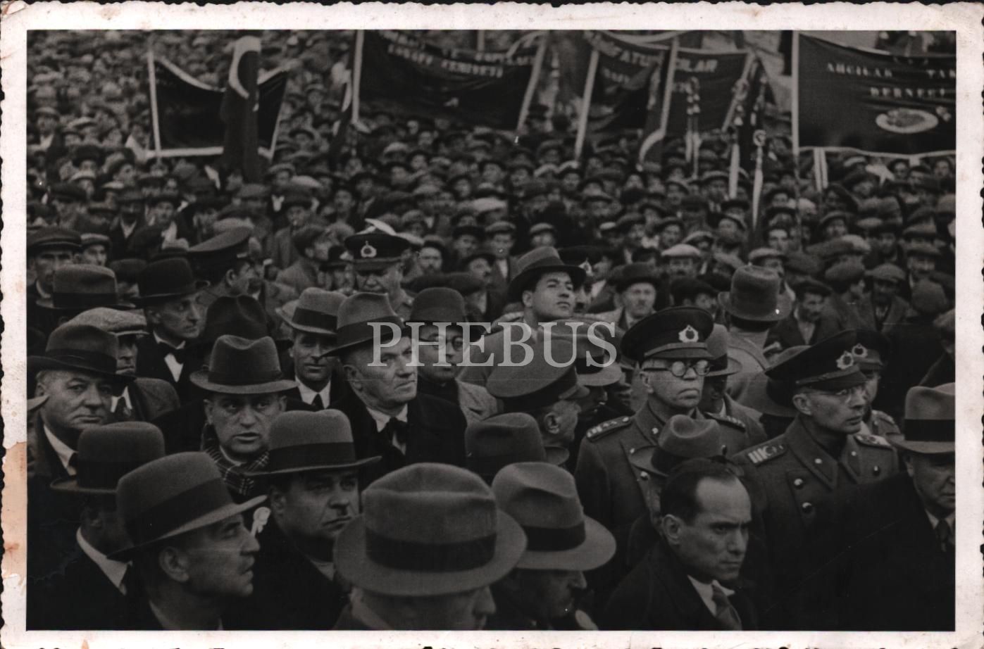 "Manifaturacı ve Tuhafiyeci Cemiyeti" yazılı pankartlarla yürüyüş yapan eylemciler, 12x18 cm
