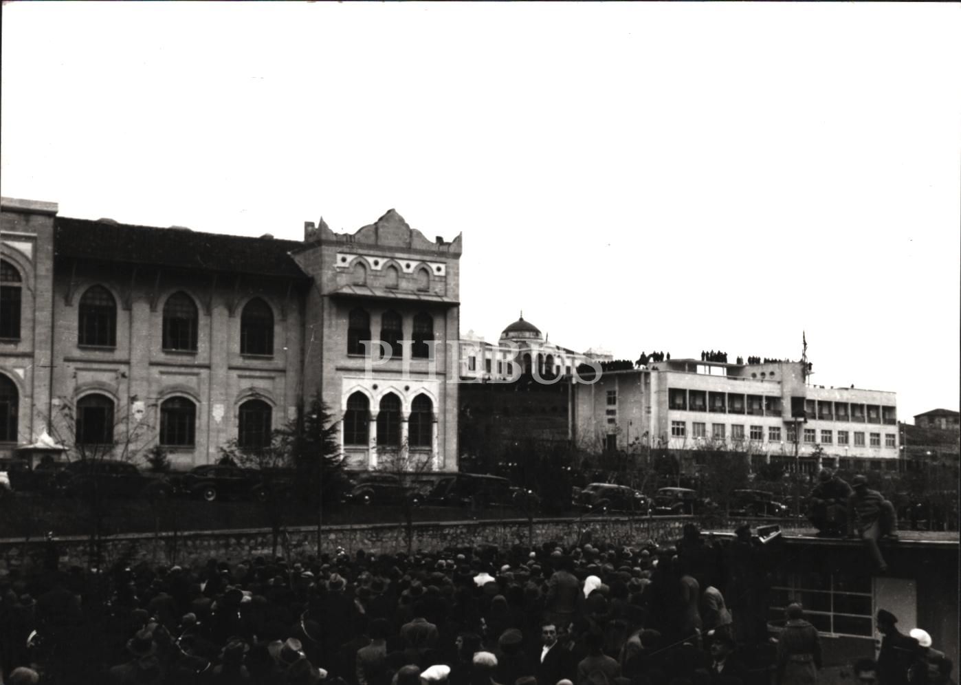 Ankara Hariciye Vekâleti (Kültür ve Turizm Bakanlığı) binası önünde toplanan kalabalık, 13x18 cm