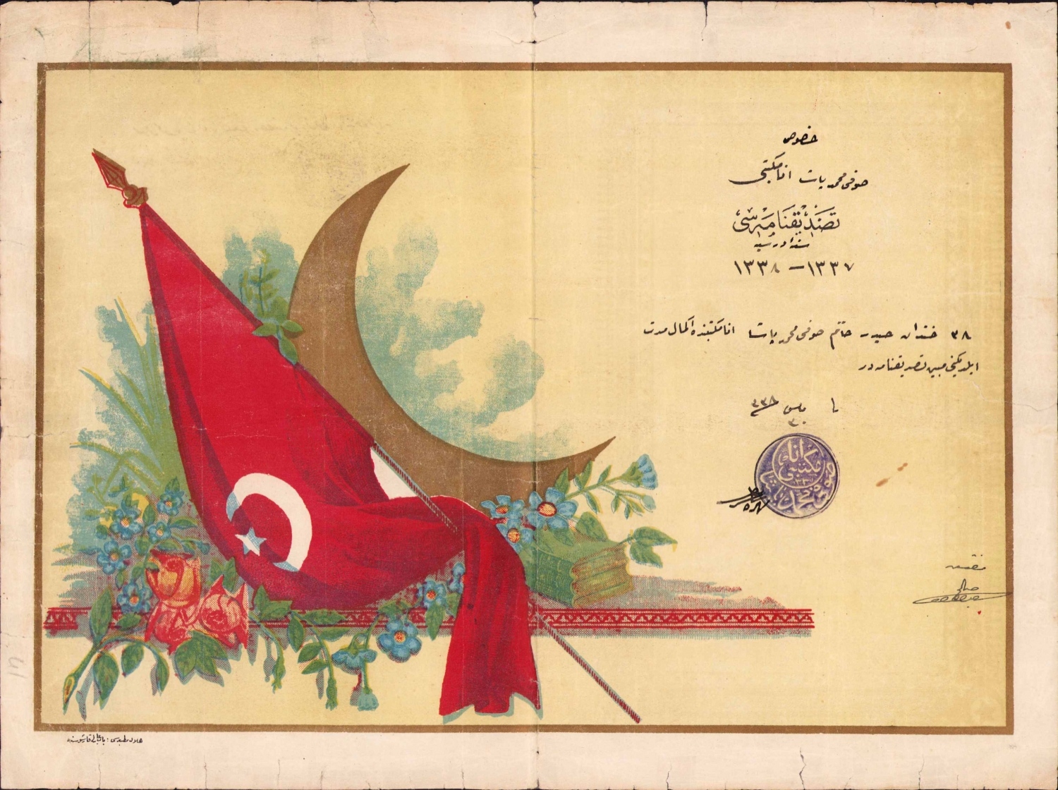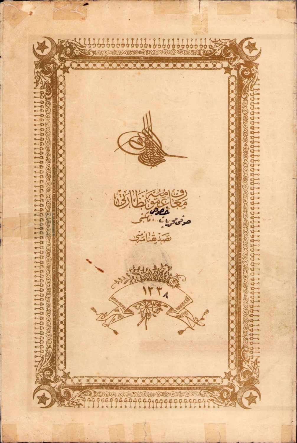 Sofu Mehmed Paşa Ana Mektebi Tasdiknamesi, Osmanlıca, 1338, 16x24,5 cm.