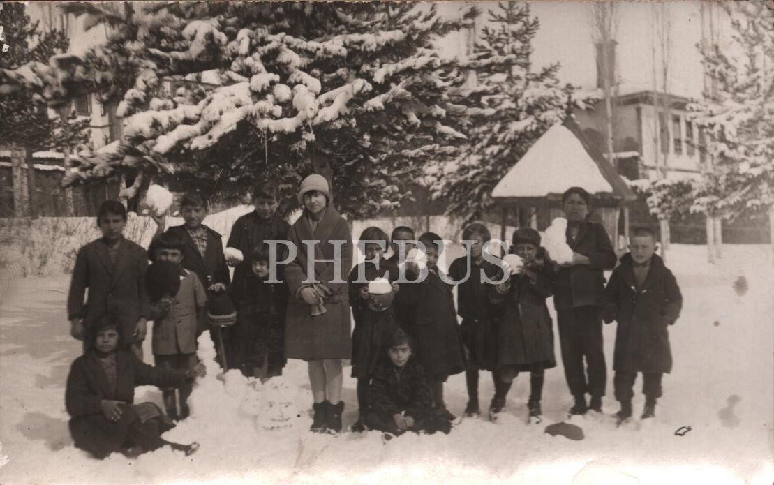 Gazi Paşa Mektebi ve öğrencilerinin kar hatırası, 8 Mart 1929, 9x14 cm
