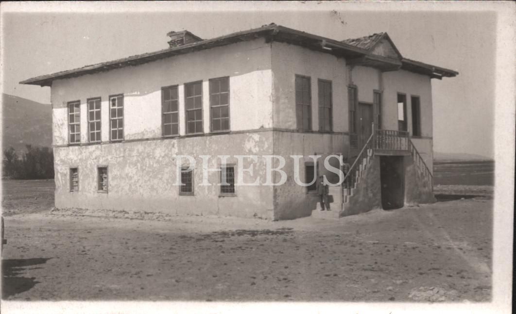 Eski bir binanın merdivenlerinden kameraya poz veren iki küçük çocuk, 9x14 cm