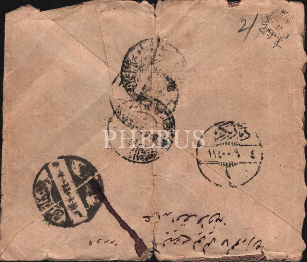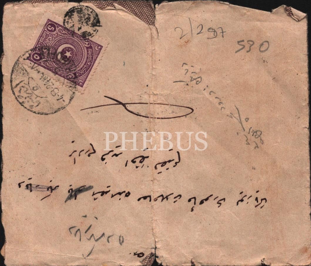 Üzerinde "Diyarbakır muamelat memuru yüzbaşı biraderim Ferid Efendi´ye takdim" yazılı boş zarf, 1340, postadan geçmiş, 12x13 cm