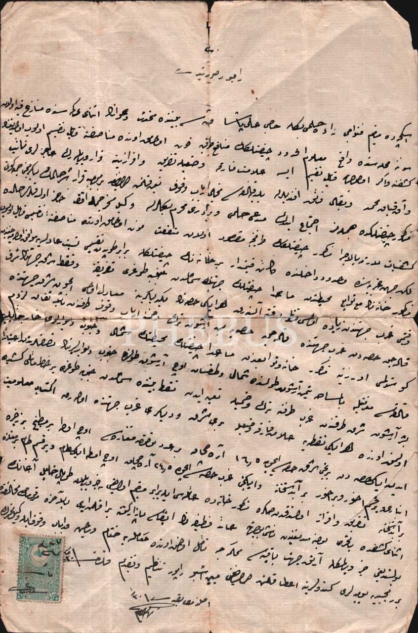 İskeçe'de bir çiftlik hakkında 1327 tarihli rapor sureti, pullu ve damgalı, 23x34 cm