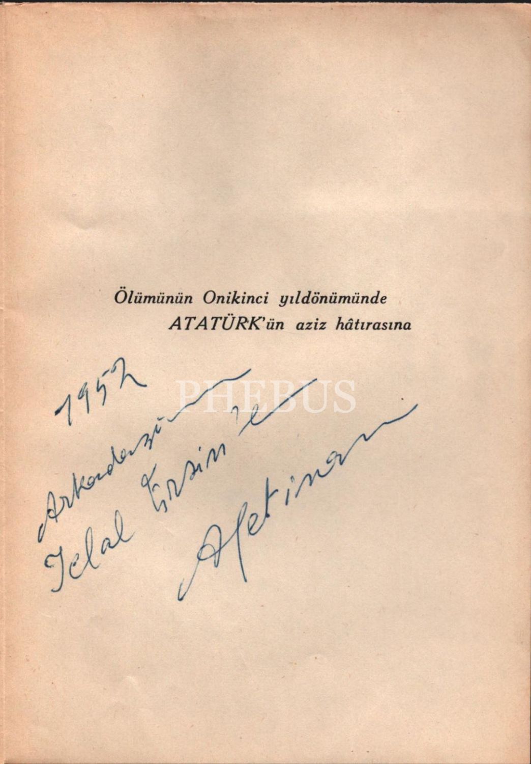 İthaf, "1952 Arkadaşım Celal Ersin´e. Afetinan" şeklindedir. Bazı formaları sırttan ayrılıp dağılmış haliyle.