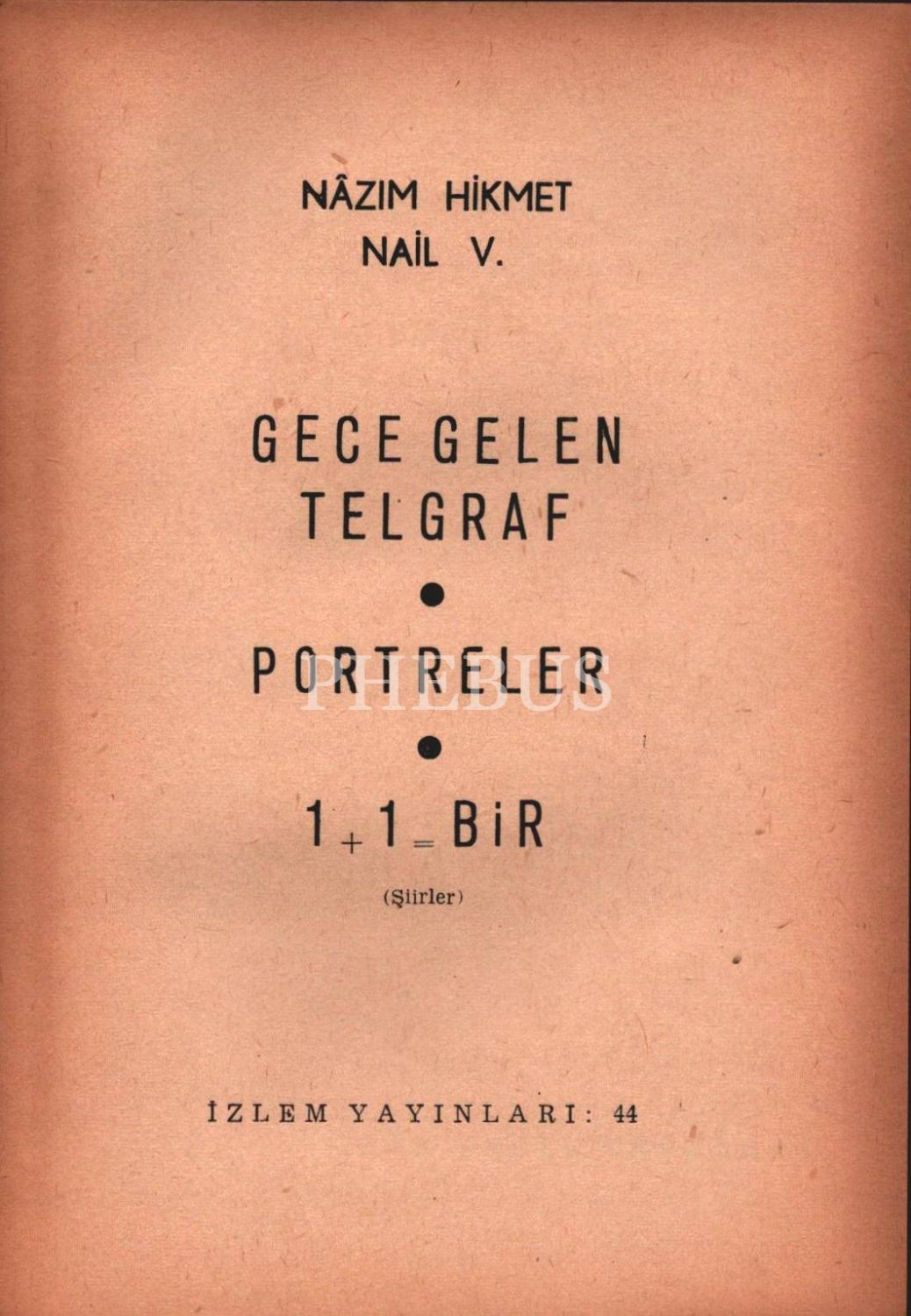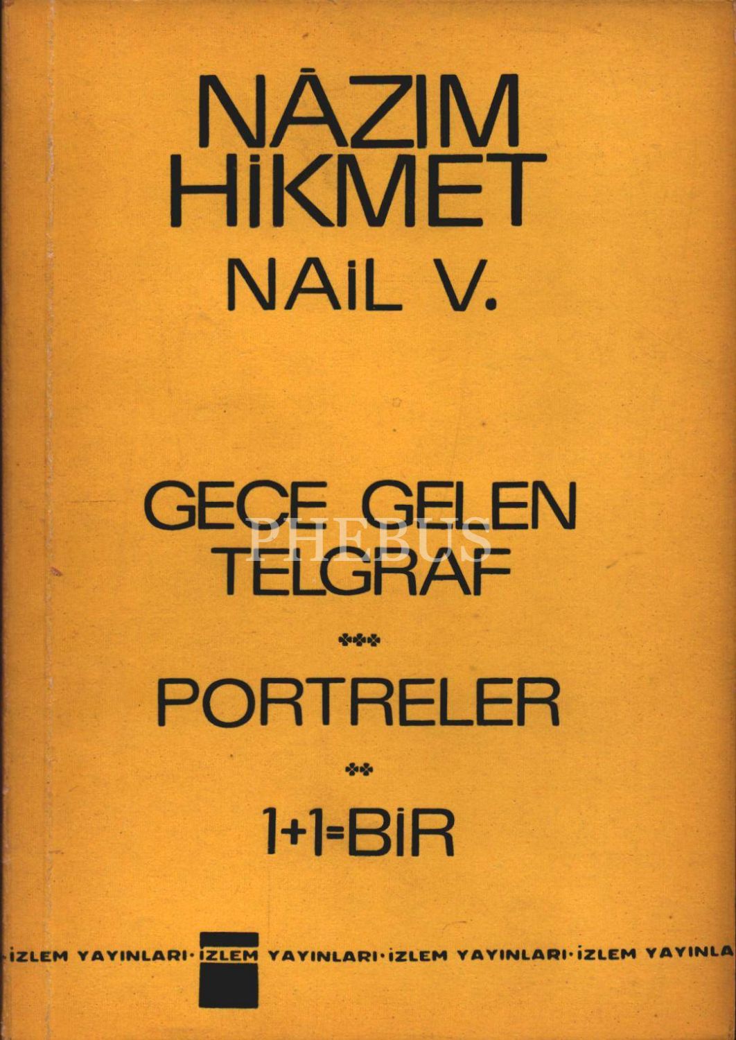 GECE GELEN TELGRAF / PORTRELER / 1+1=BİR (Şiirler), Nâzım Hikmet & Nail V., İzlem Yayınları, İstanbul - Ağustos 1966, 106 sayfa, 14x20 cm