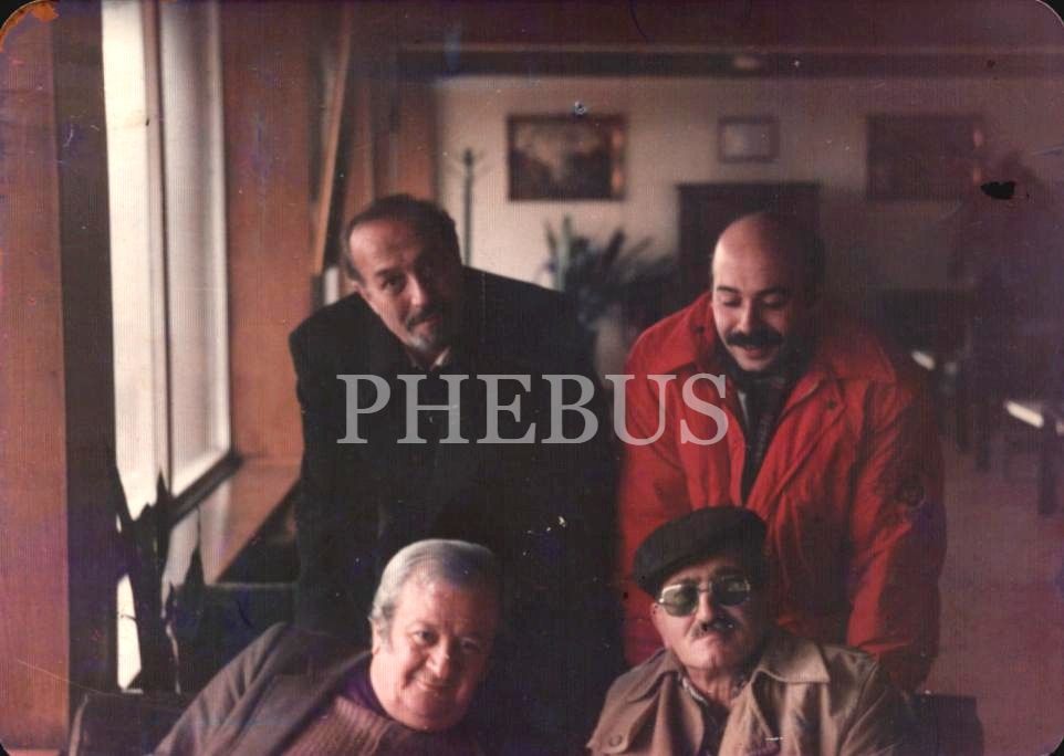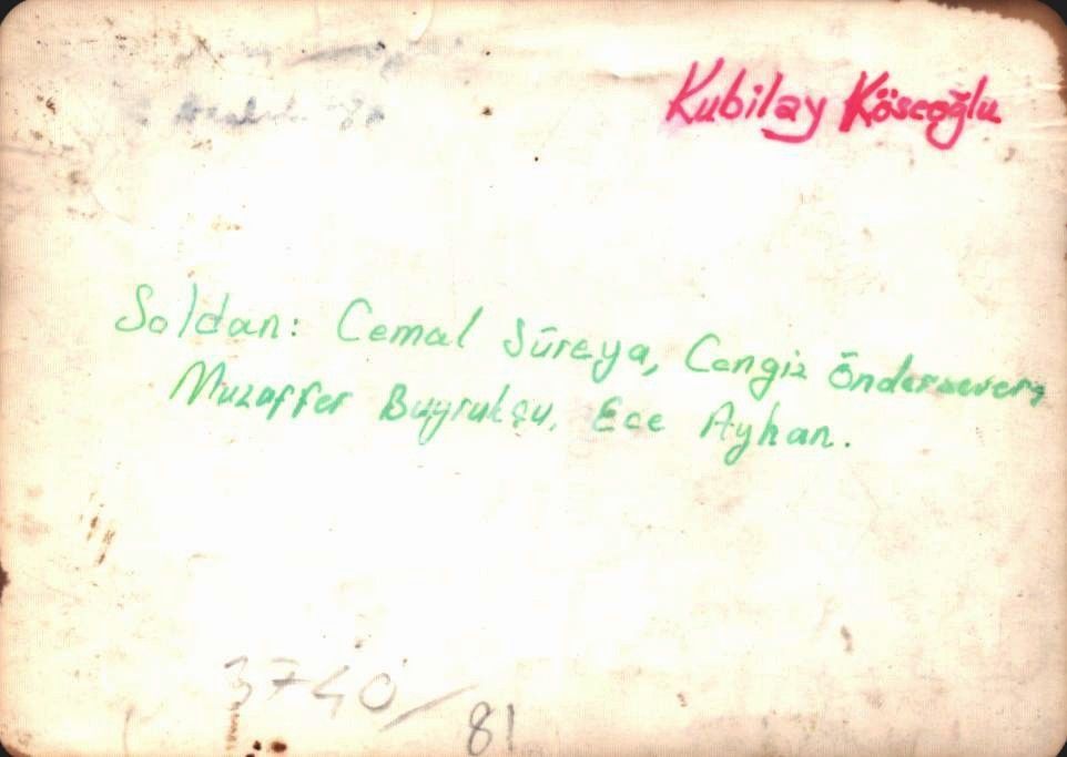 Cemal Süreya, Cengiz Öndersever, Muzaffer Buyrukçu ve Ece Ayhan bir arada, 12x9 cm