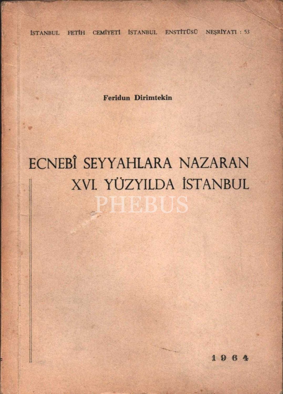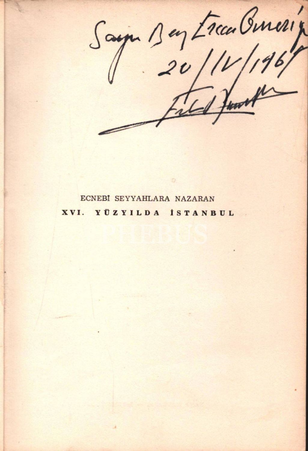 Feridun Dirimtekin´den ithaflı ve imzalı ECNEBÎ SEYYAHLARA NAZARAN XVI. YÜZYILDA İSTANBUL, Baha Matbaası, İstanbul - 1964, 78 sayfa, 14x20 cm