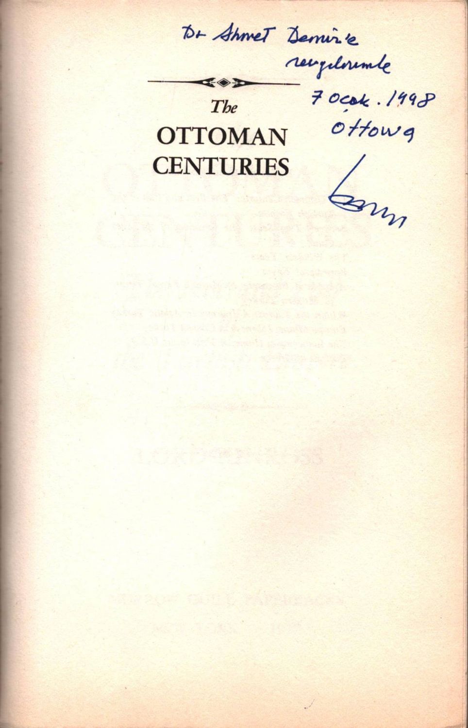 Kitabın ilk sayfasında imzası tespit edilemeyen bir ithaf mevcuttur: "Dr. Ahmet Demir´e sevgilerimle. 7 Ocak 1998 Ottowa"