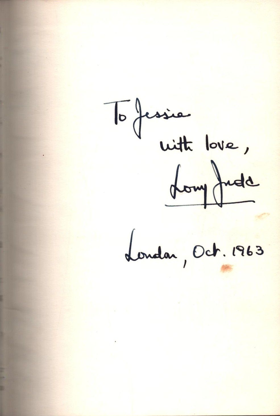 İthaf, "To Jessica with love, L... Juda. London, Oct. 1963" şeklindedir.