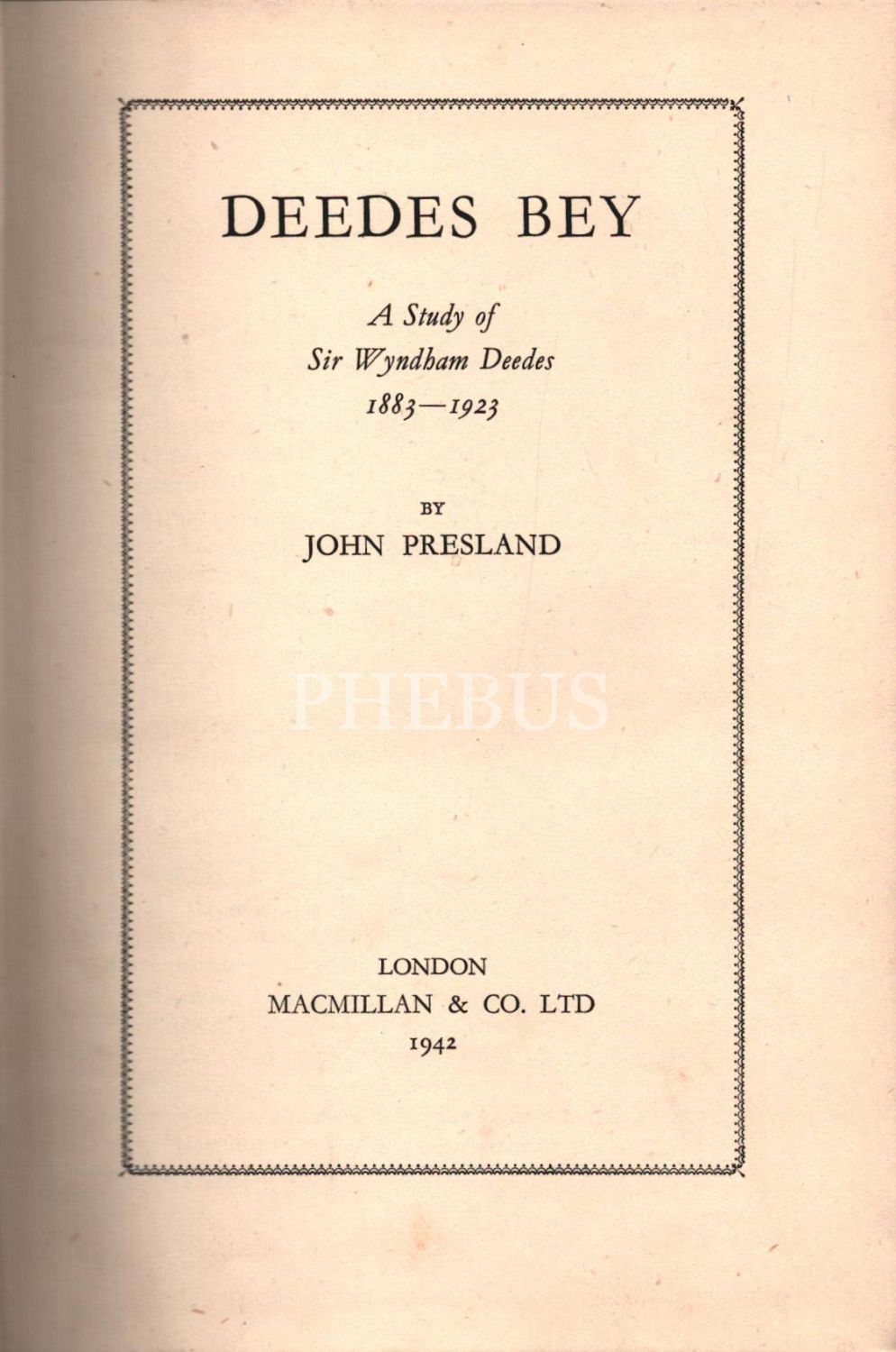 DEEDES BEY (A Study of Sir Wyndham Deedes 1883-1923), John Presland, Macmillan & Co. Ltd, London - 1942, 359 sayfa, 16x22 cm