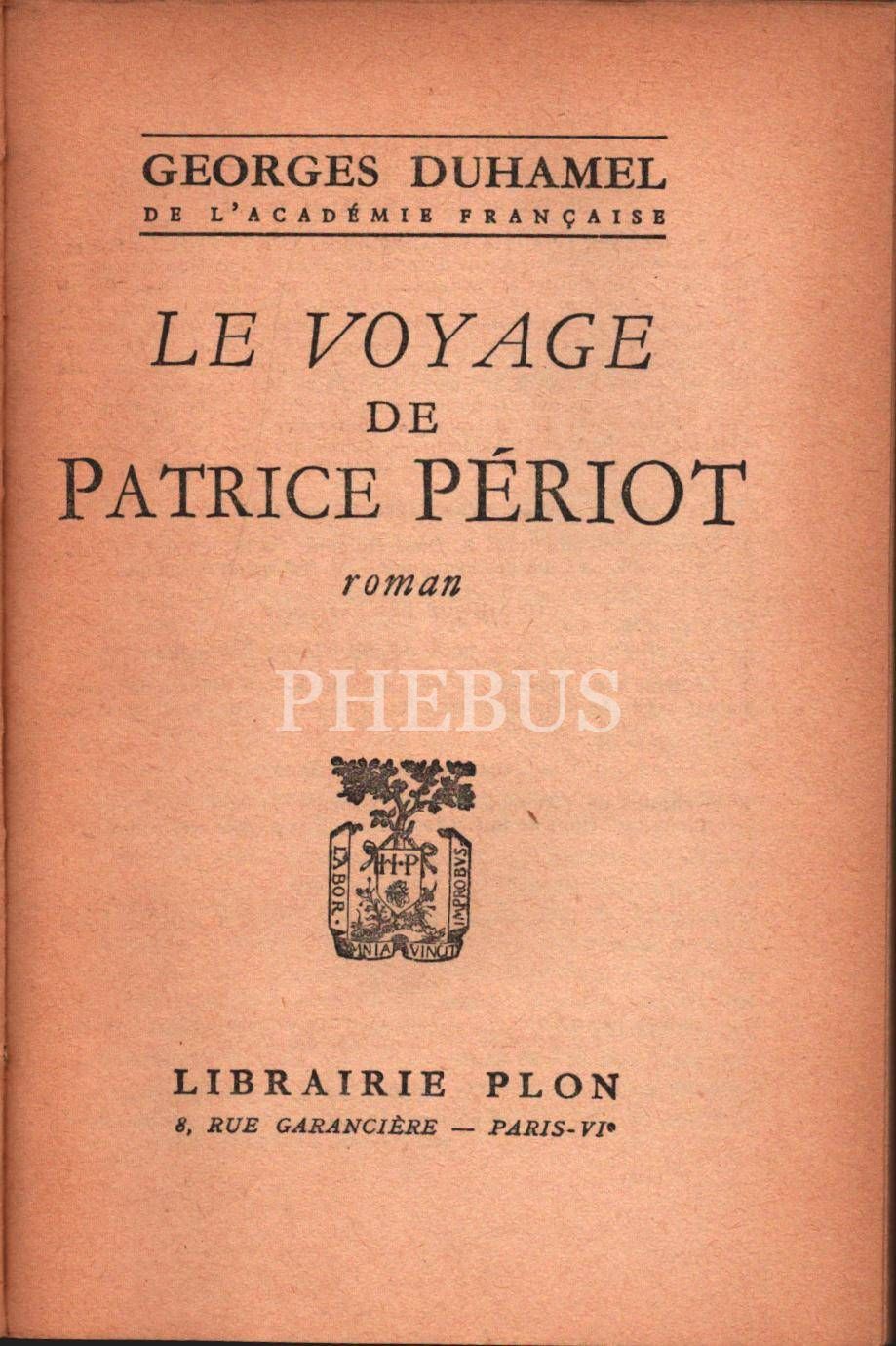 Georges Duhamel´den imzalı LE VOYAGE DE PATRICE PERIOT (Roman), Librairie Plon, Paris - 1950, 247 sayfa, 12x18 cm