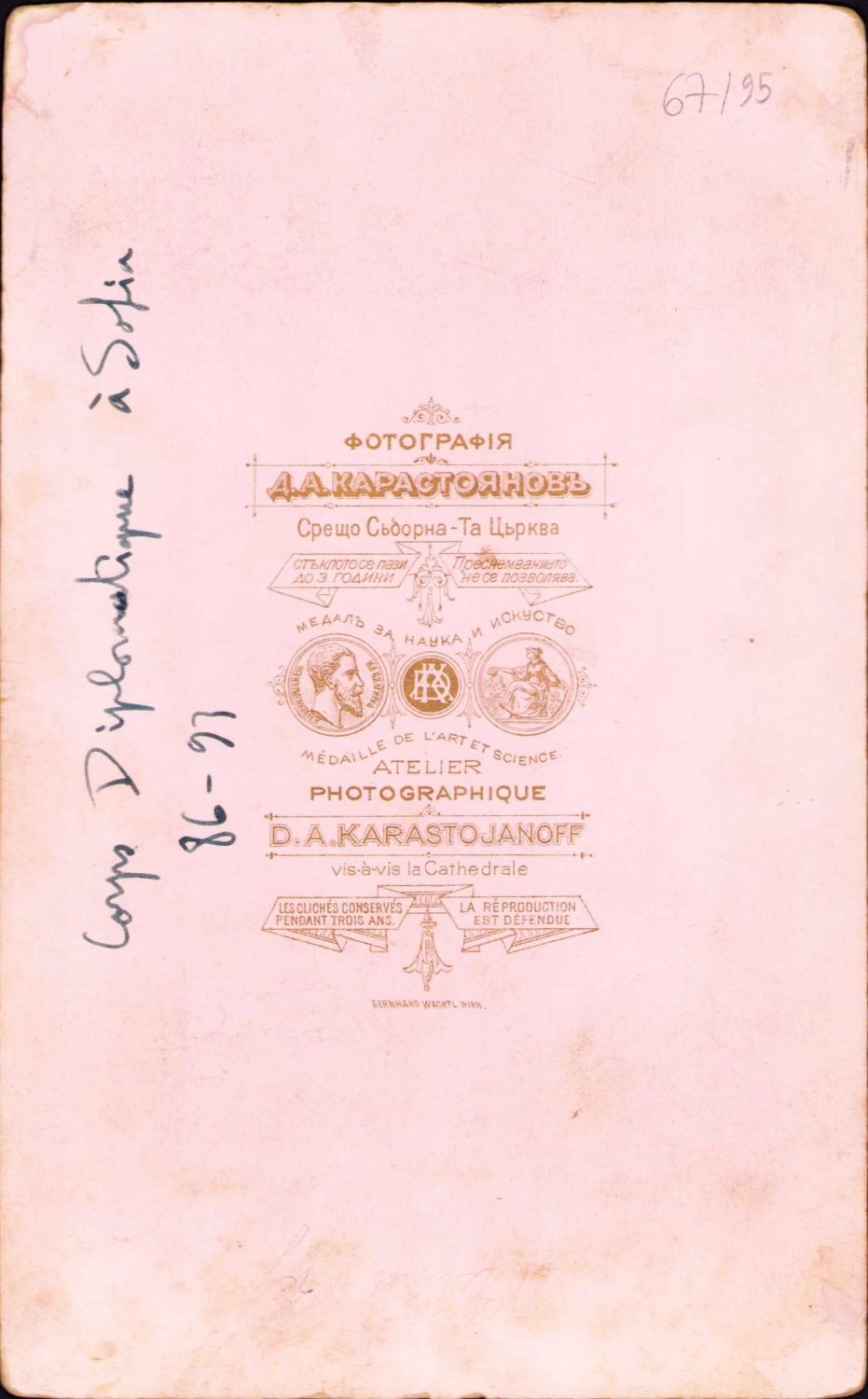 Aralarında Osmanlı İmparatorluğu'nun son Hariciye Nazırlarından Mustafa Reşid Paşa'nın da bulunduğu diplomatlar, kabin fotoğrafı, imzalı, D. A. Karastojanoff, 21x13 cm,
