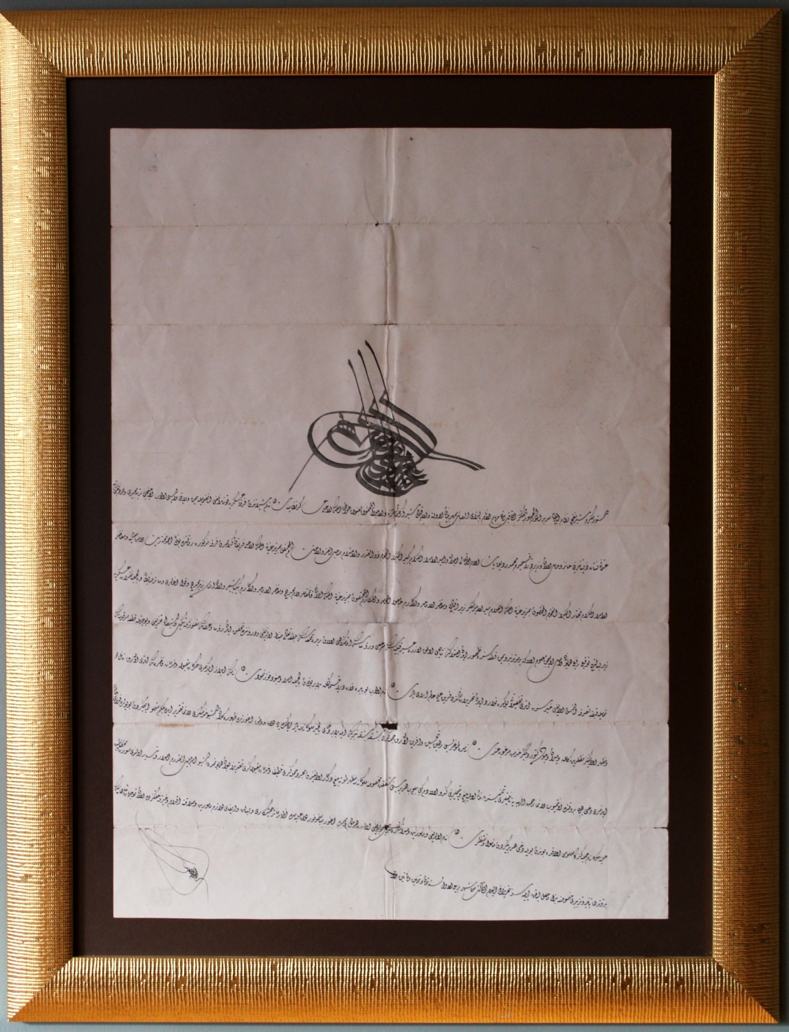 Sultan Abdülaziz el çekme tuğralı, Vezir Mehmed Redif Paşa'ya buyrulan Ahmed Muhtar Paşa'nın Yemendeki görevlendirme tayini konulu ferman. 78x102 cm.