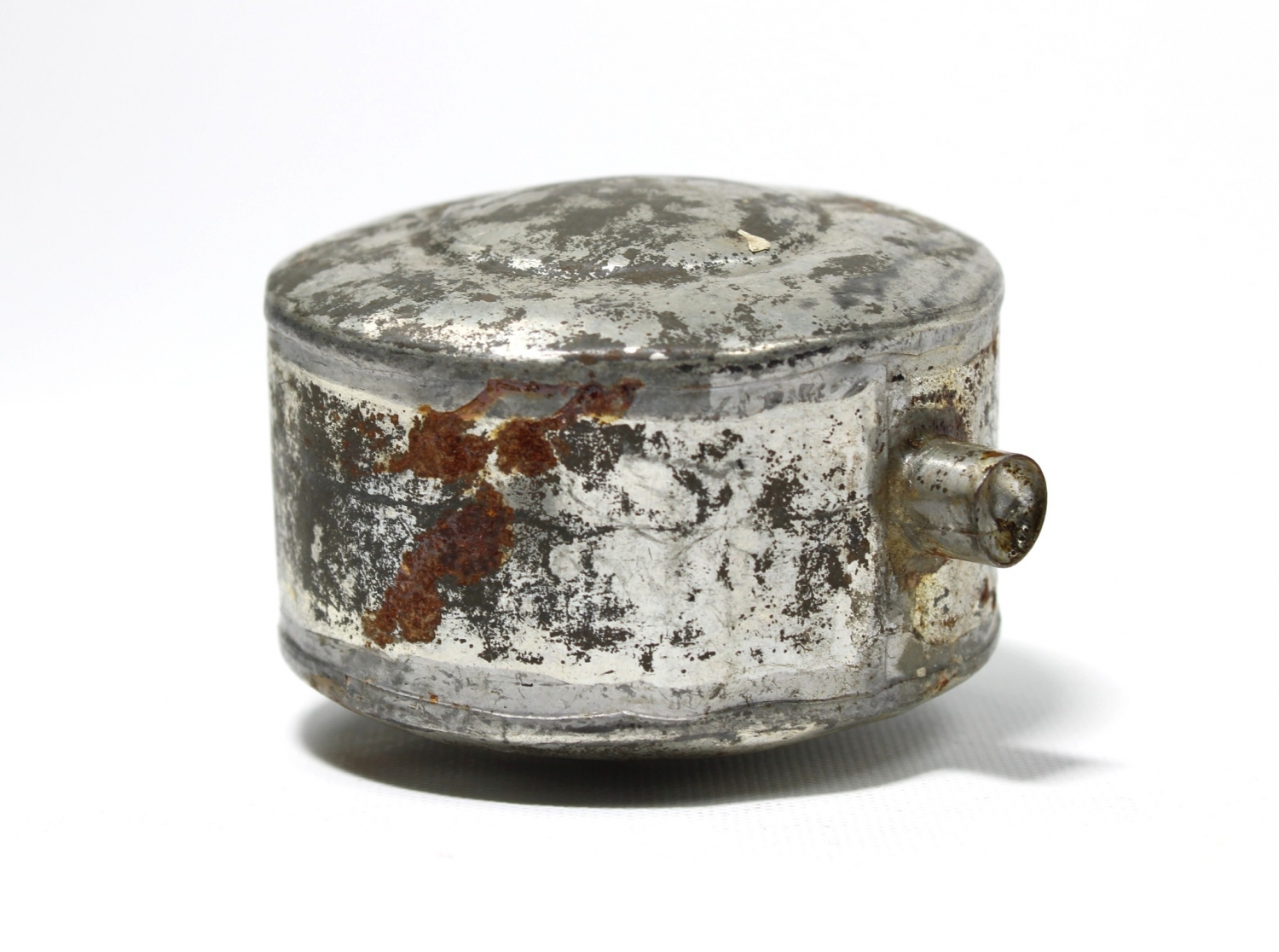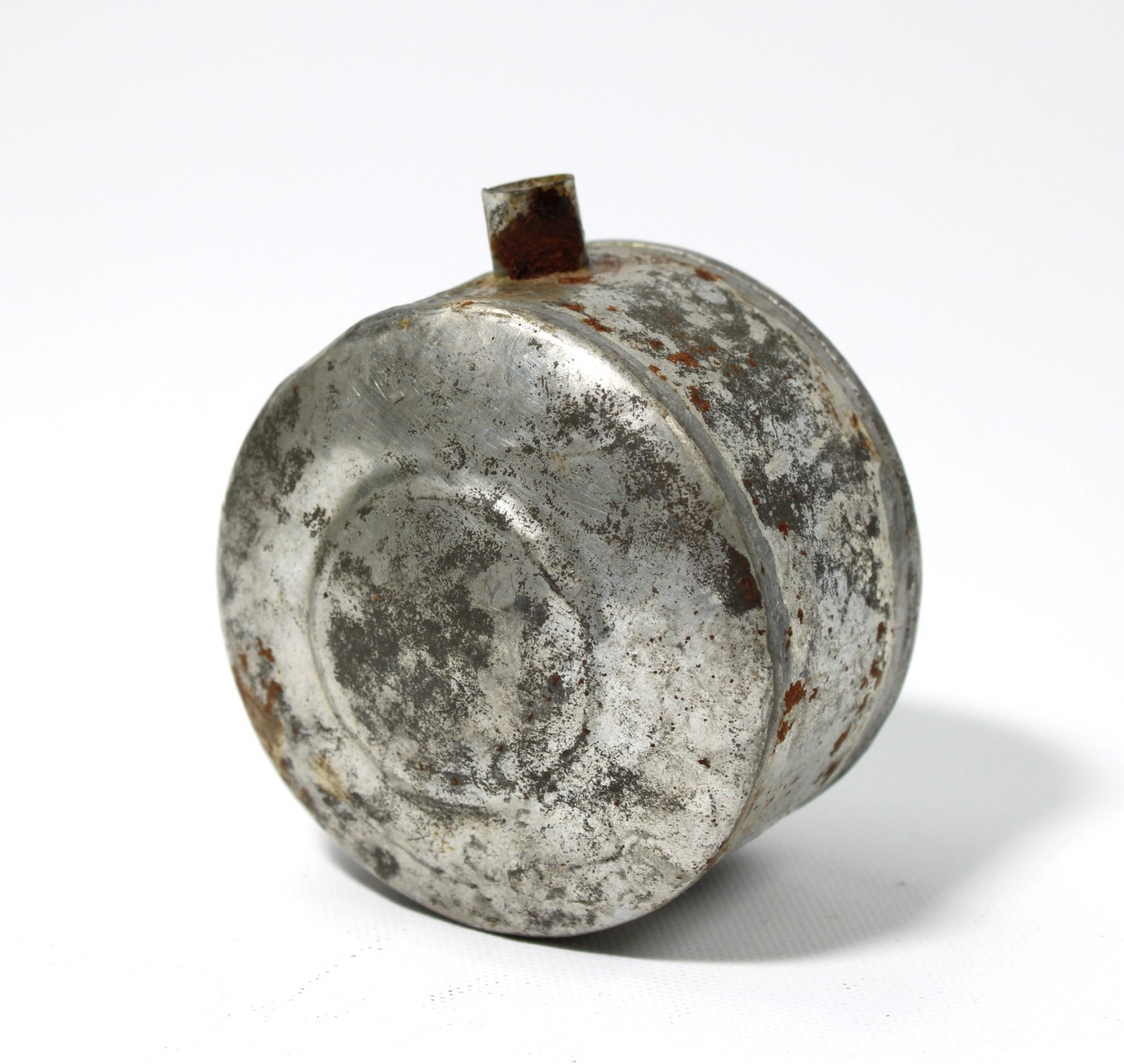 Osmanlı dönemi içerisinde zemzem suyu bulunan teneke kutu, 6x3 cm.