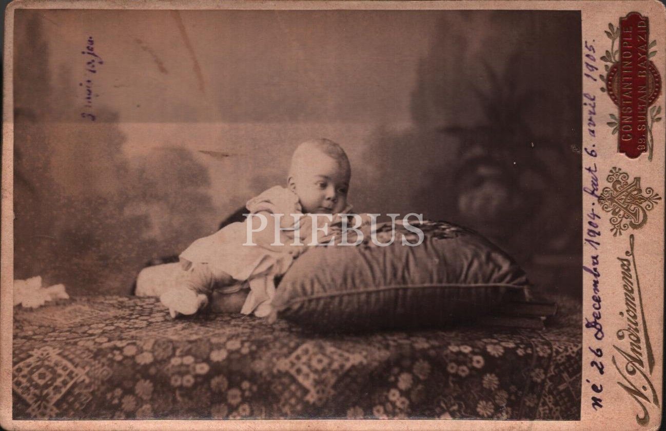 26 Aralık 1904 doğumlu bir bebeğin hatıra kabin fotoğrafı, Foto N. Andriomenos Constantinople, 11x16 cm