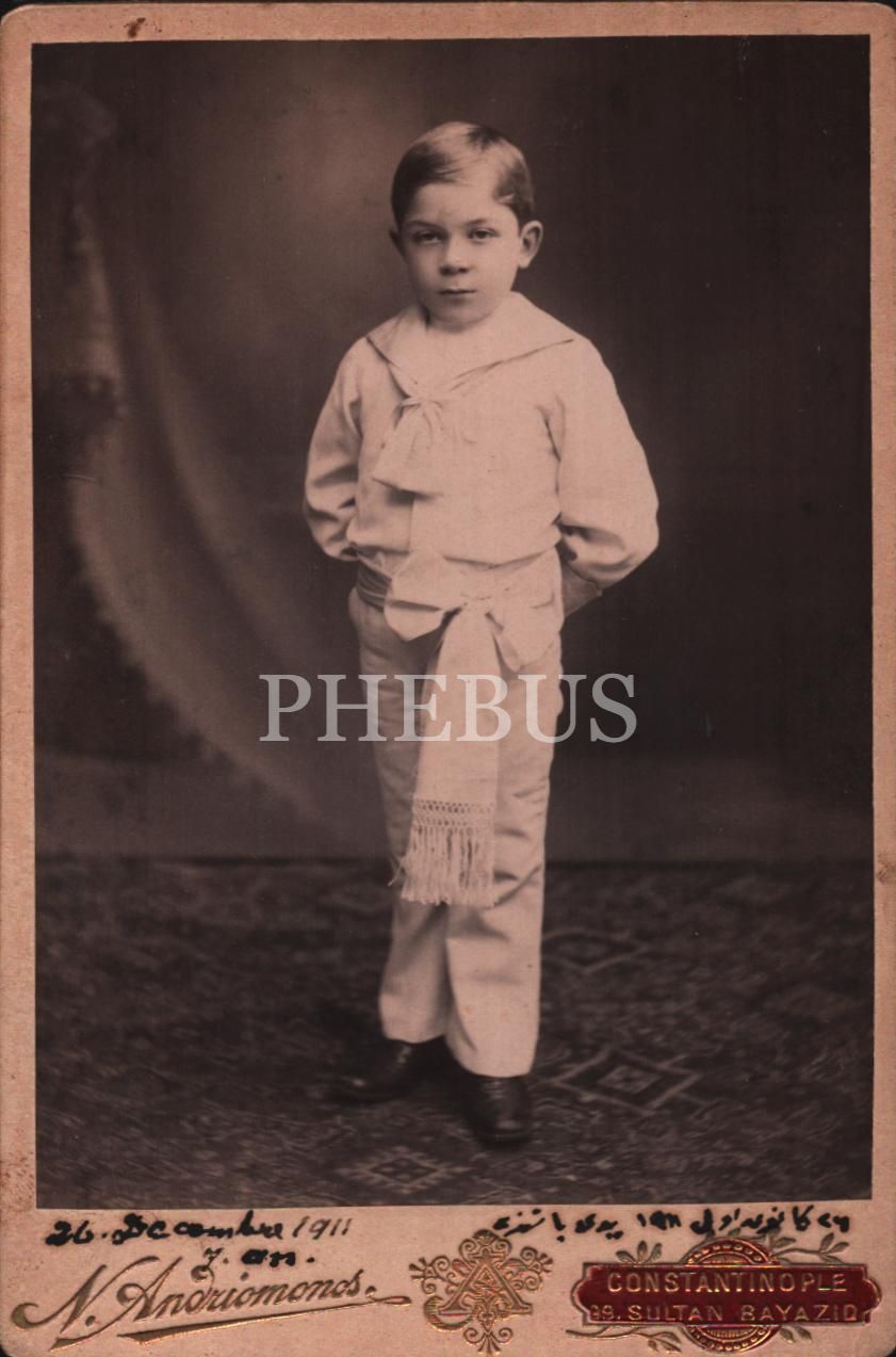 Yedi yaş hatırası kabin fotoğrafı, 26 Aralık 1911 7:00, Foto N. Andriomenos Constantinople, 11x16 cm