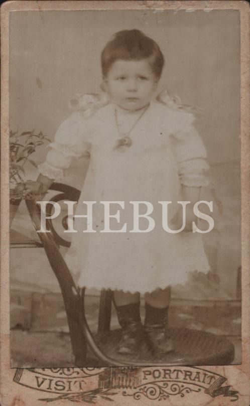 Sevimli bebeğin boynunda emziği ile çekildiği hatıra kabin fotoğrafı, Foto Souvenir, 6x10 cm