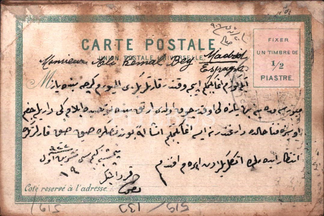 1906 tarihinde Ali Kemal Bey´e (Madrid/İspanya´ya) gönderilen kartpostaldır.