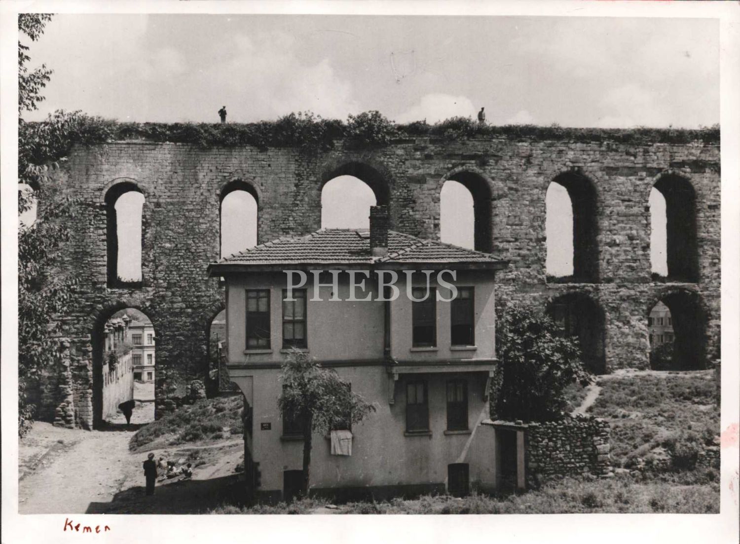 Valens Su Kemeri´nin üzerinde gezen insanlar ve önünde cumbalı bir ev, ikinci baskı, 18x24 cm