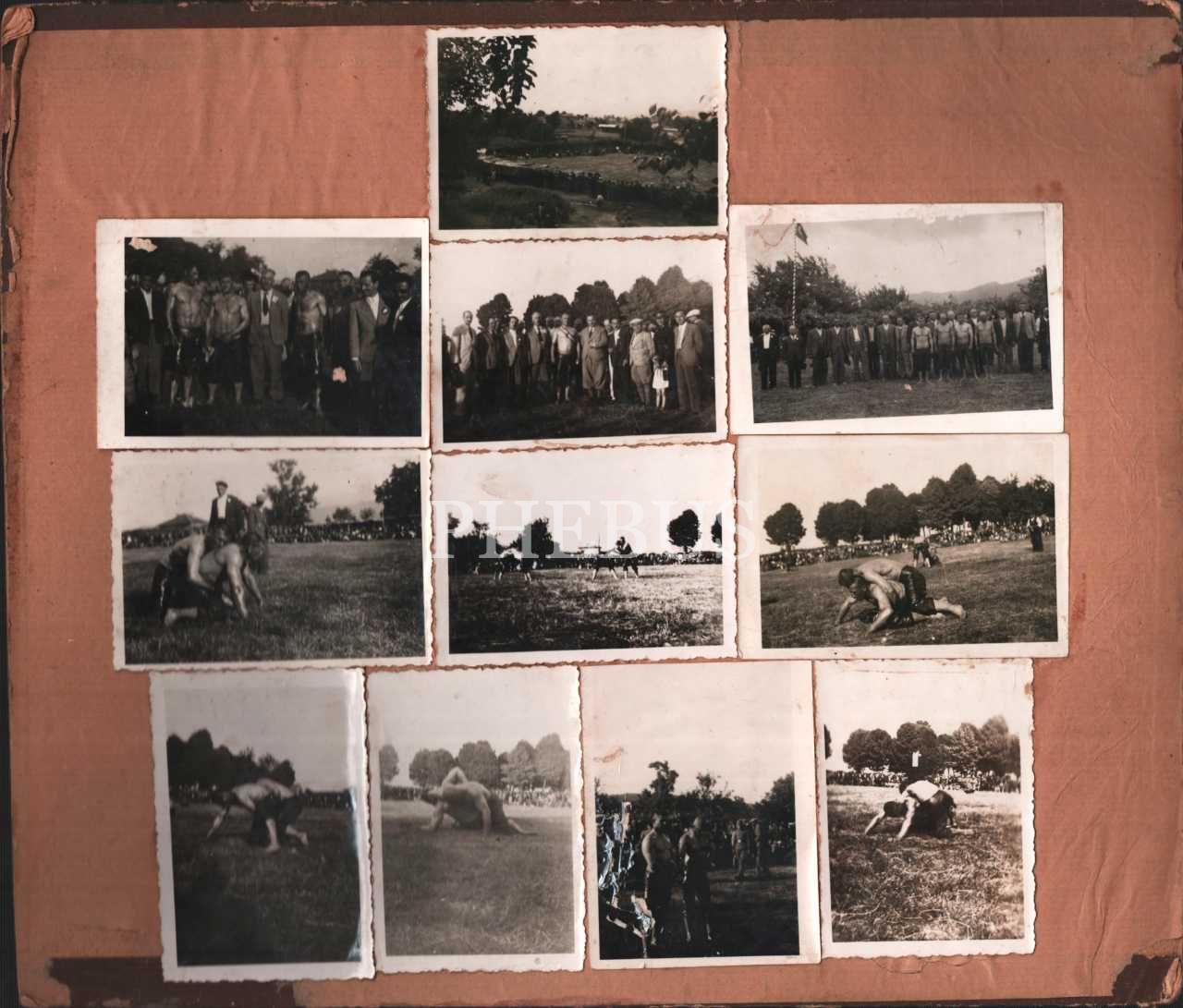 Yağlı güreş hatırası pano halinde 11 adet fotoğraf, fotoğraflar 6x9 cm pano 28x33 cm