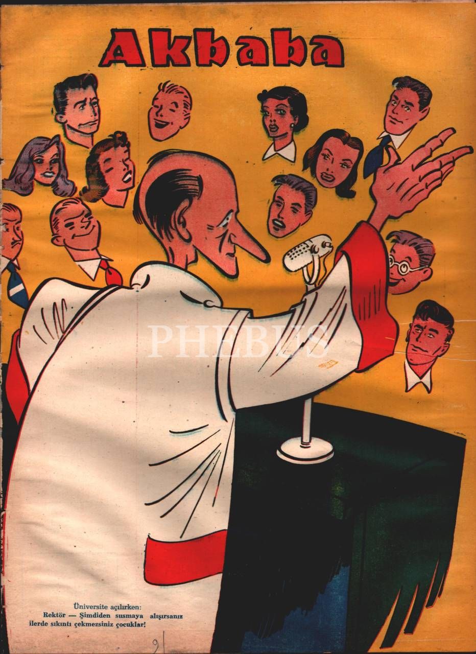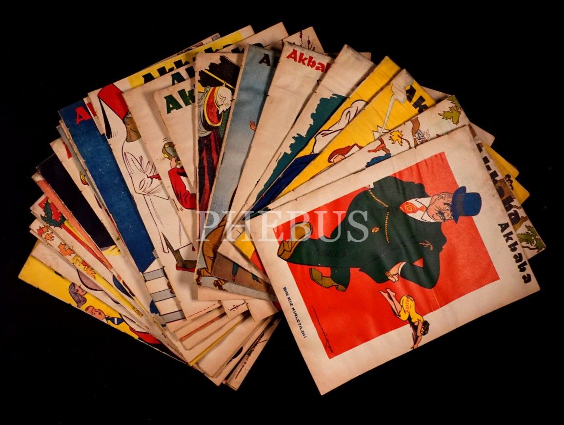 Siyasi mizah gazetesi AKBABA´nın 1954-55 yıllarına ait 25 adet sayısı, 25x32 cm