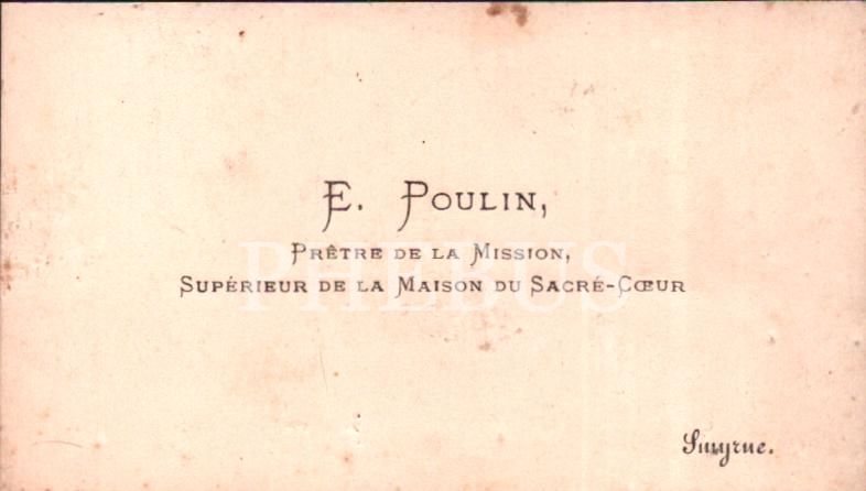 Misyon rahibi, Sacré-Cœur [Kutsal Kalp Bazilikası] evinin efendisi E. Poulin´e ait kartvizit, Smyrne [İzmir]