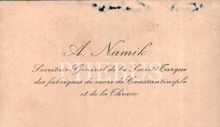 İstanbul ve Trakya Türk Şeker Fabrikaları Derneği Genel Sekreteri A. Namik´a ait kartvizit