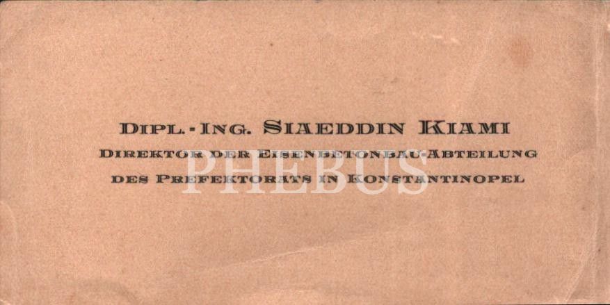 Constantinopolis Himayesinin Betonarme İnşaat Dairesi Müdürü Siaeddin Kiami´e ait kartvizit