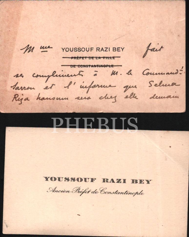 Eski Constantinopolis Valisi Yusuf Razi Bey´e ait kartvizit (2 adet)