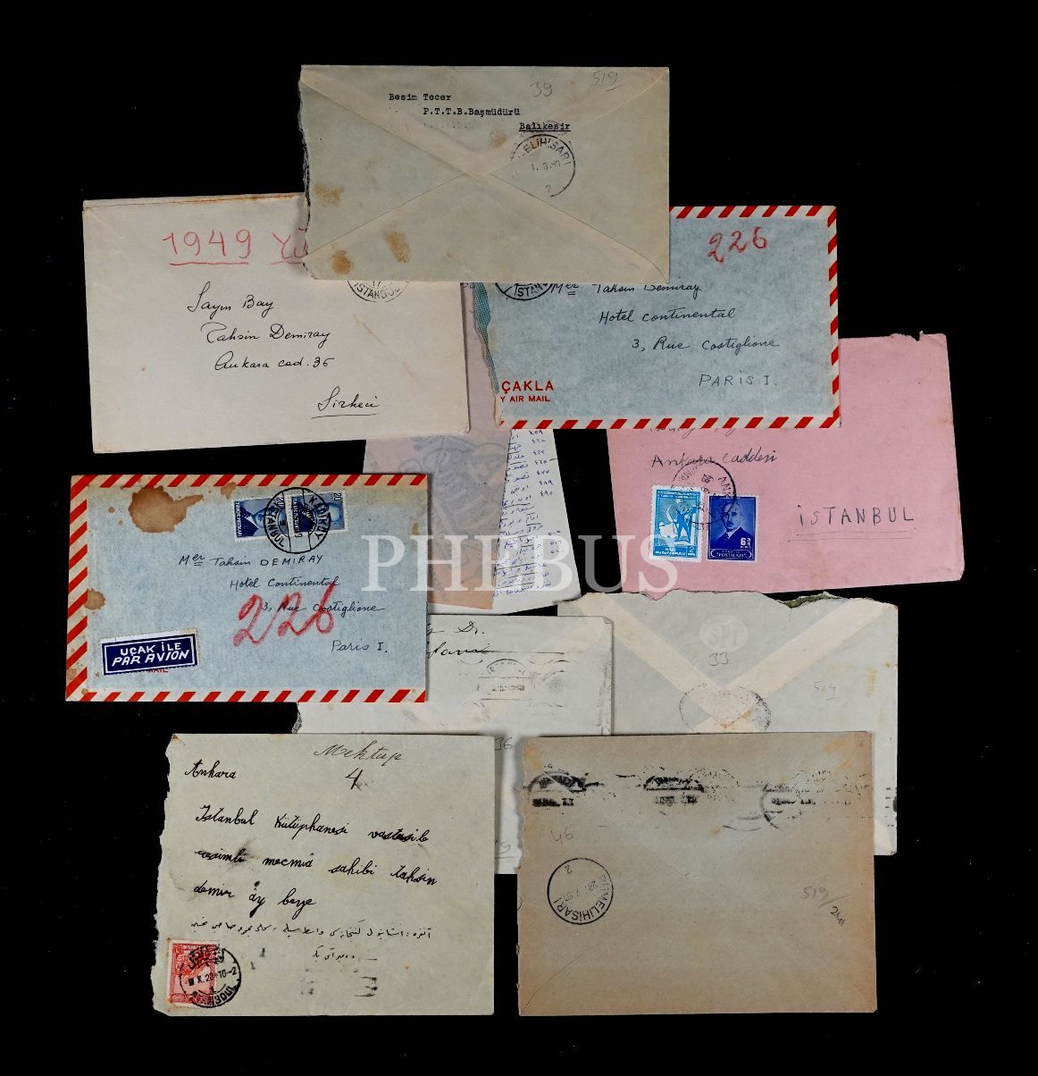 T.C.’nin ilk ve en önemli yayıncılarından ve ilk yayınevlerinden birisi olan Türkiye Yayınevi’ni kuran Tahsin Demiray´a gönderilen mektupların zarfları (9 adet), 12x16 cm