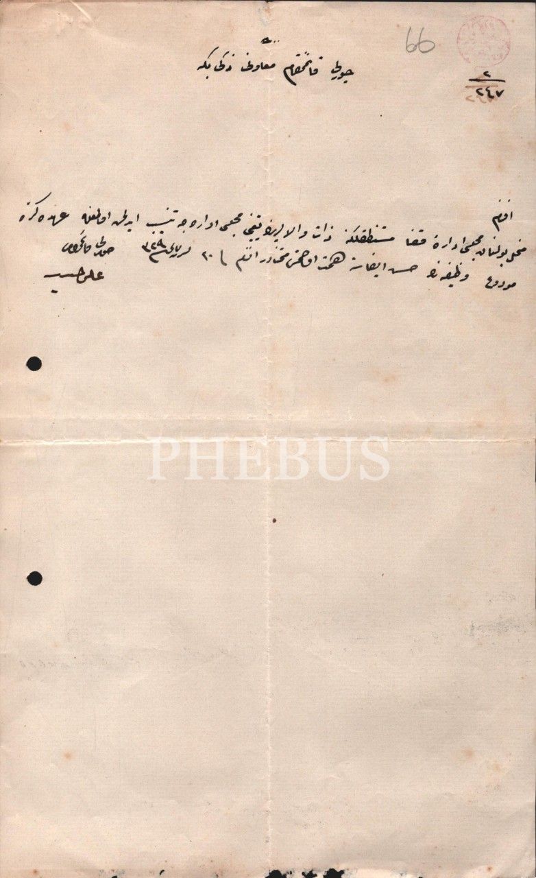 Çorlu Kaymakamı Ali Haydar yazılan tayin mektubu, 1329, 20x32 cm