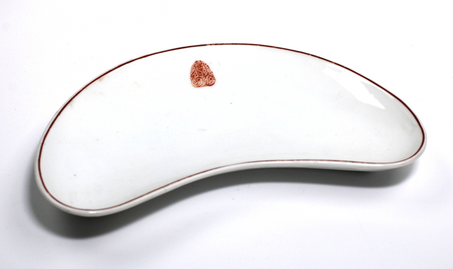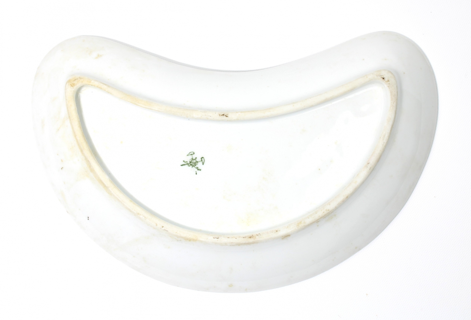 Osmanlıca divani hatla 'Boğaziçi Kulübü' yazılı porselen tabak, 21x11 cm.