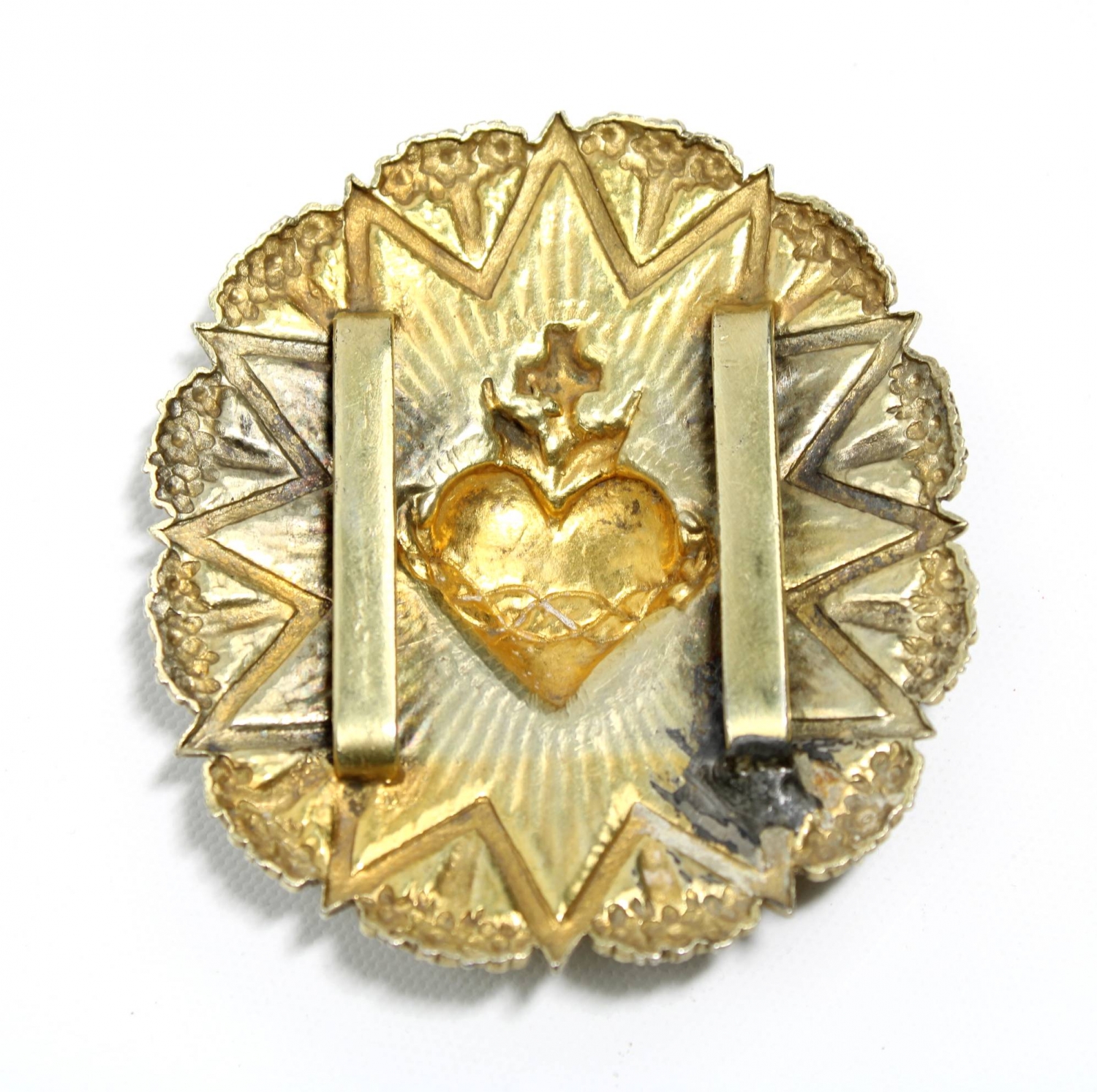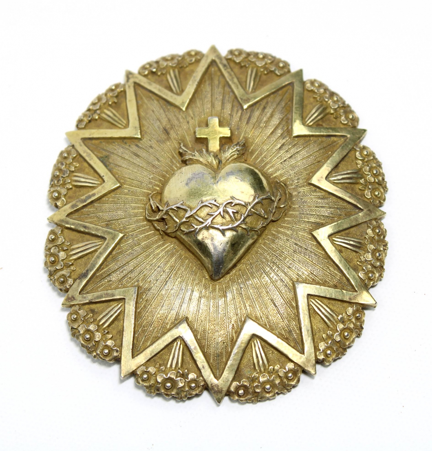 Üzerinde kalp ve haç kabartması bulunan eski dönem gümüş obje, 7x8 cm.