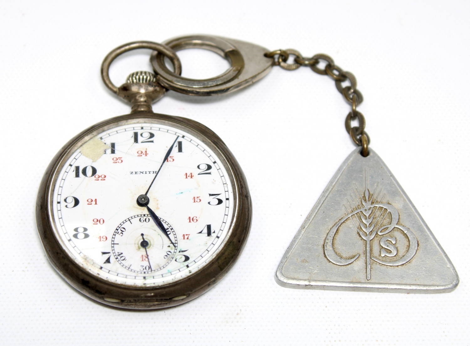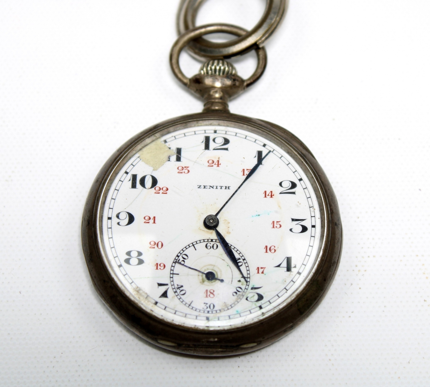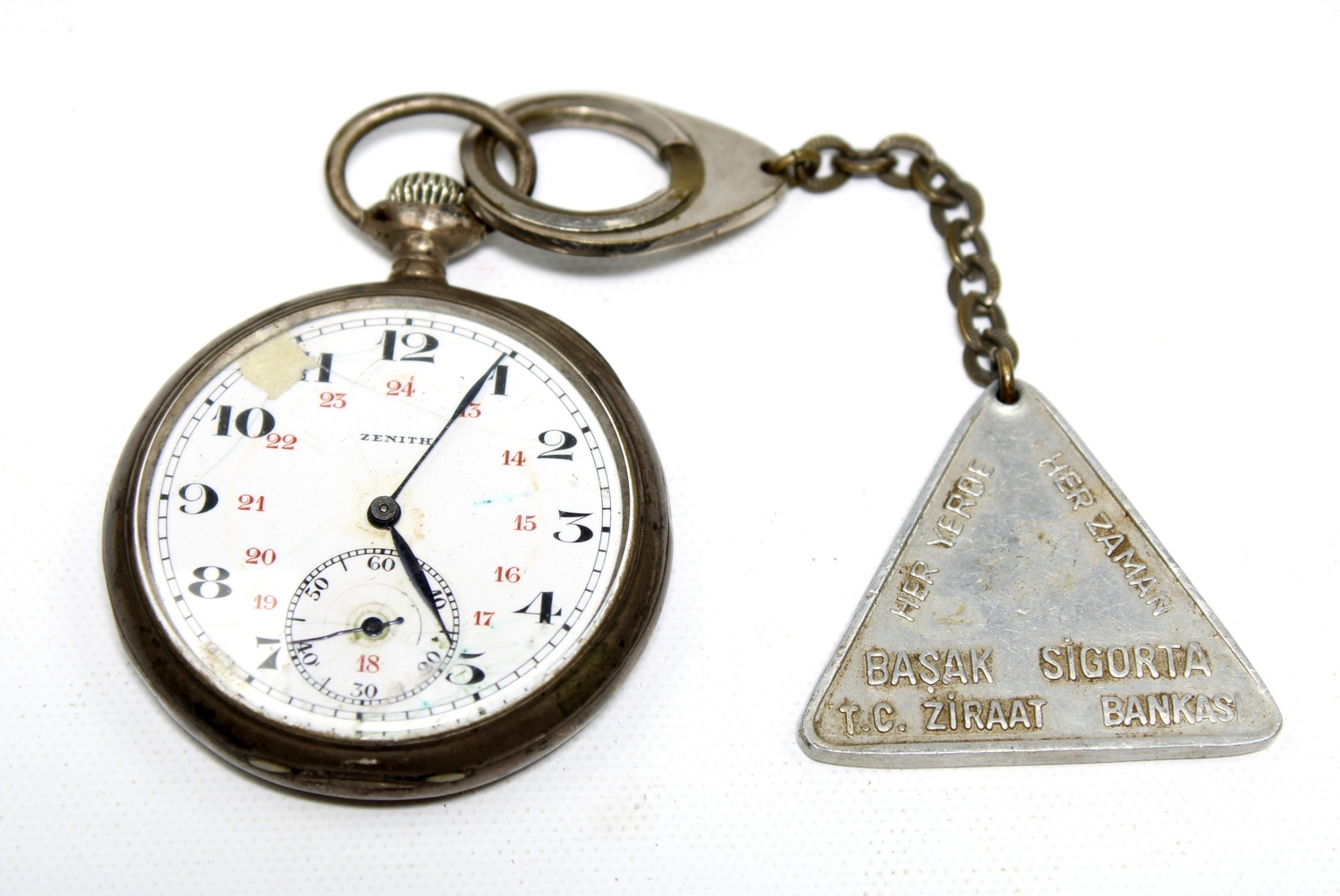 Zenith marka cep saati, çalışır vaziyette, kadran haliyle, gümüş kasa, 4,5 cm.