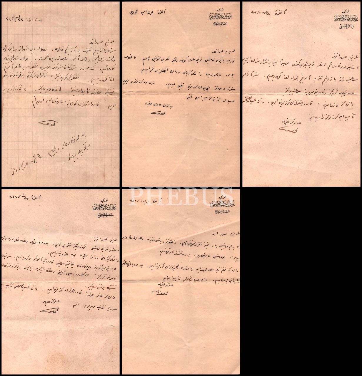 Dördü Türkiye Büyük Millet Meclisi antetli kâğıt üzerinde Hasan Efendi'ye hitaben kaleme alınan şahsi mektuplar (5 sayfa), Ankara 1928 & İstanbul 1340, 13x21 cm