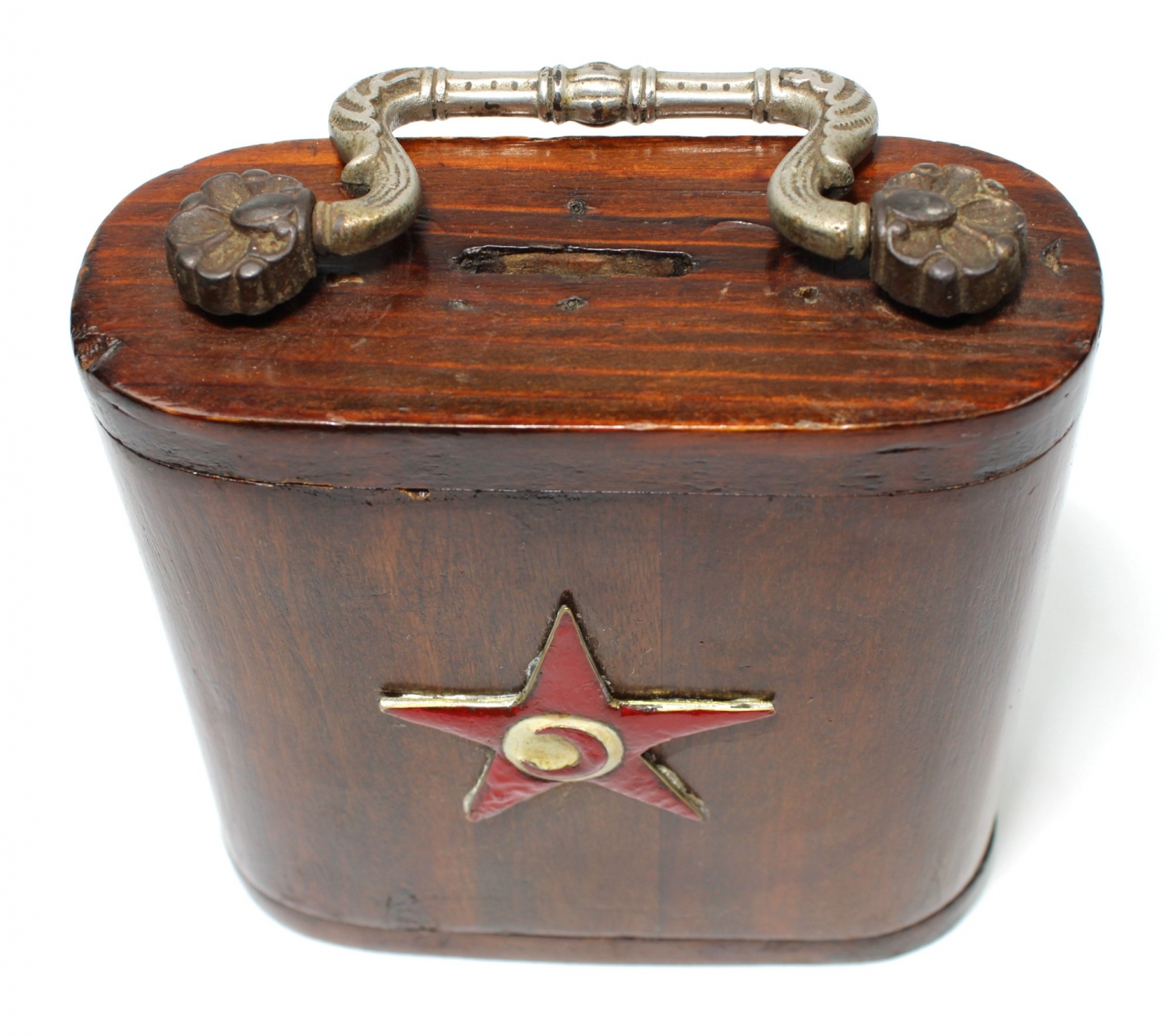 Çocuk Esirgeme Kurumu plaketli ahşap kumbara, 13,5x5,5x14 cm.