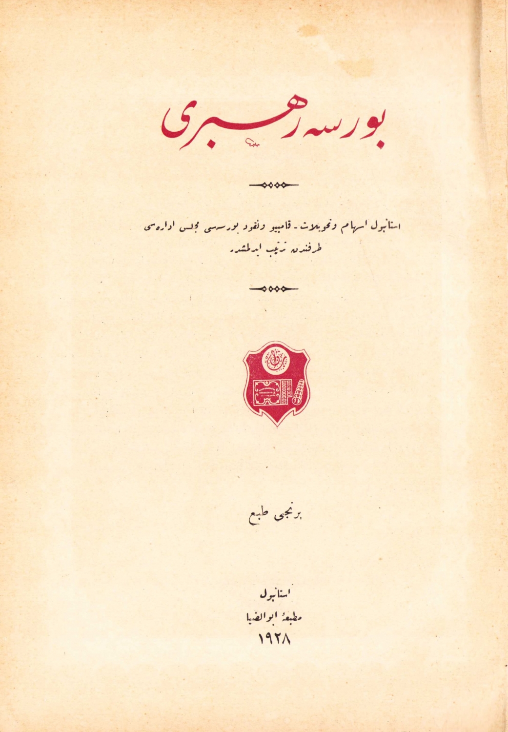 Borsa Rehberi, Birinci baskı, Ciltli, Osmanlıca, 1928, Ebuzziya Matbaası, 700+102 sayfa, 20x27,5 cm.