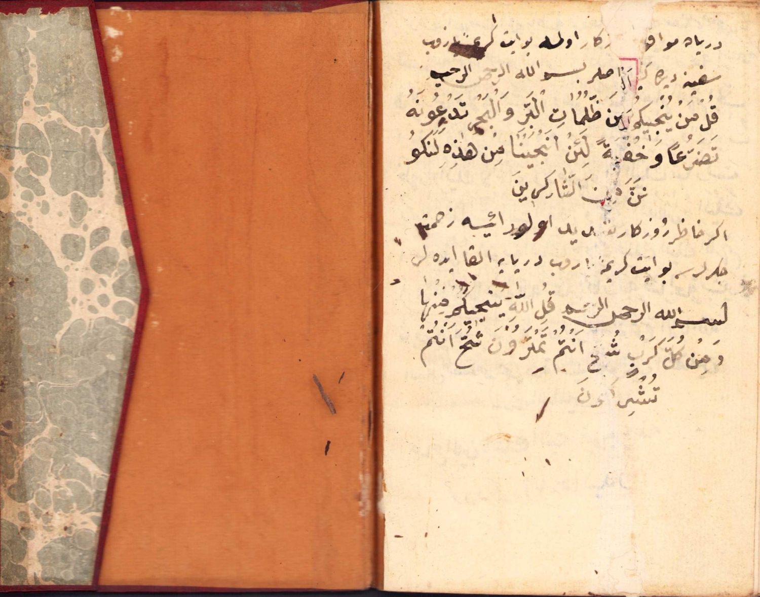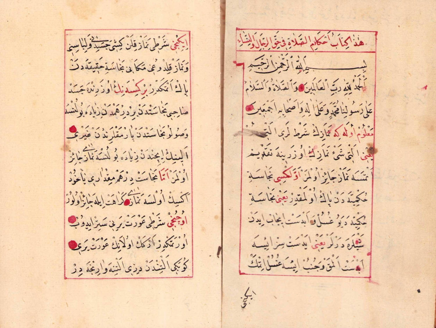 Namaz kılmanın hükümleriyle alakalı yazma eser, Osmanlıca, nesih, mıklepli ebrulu cildinde, 11 varak,11x16 cm.